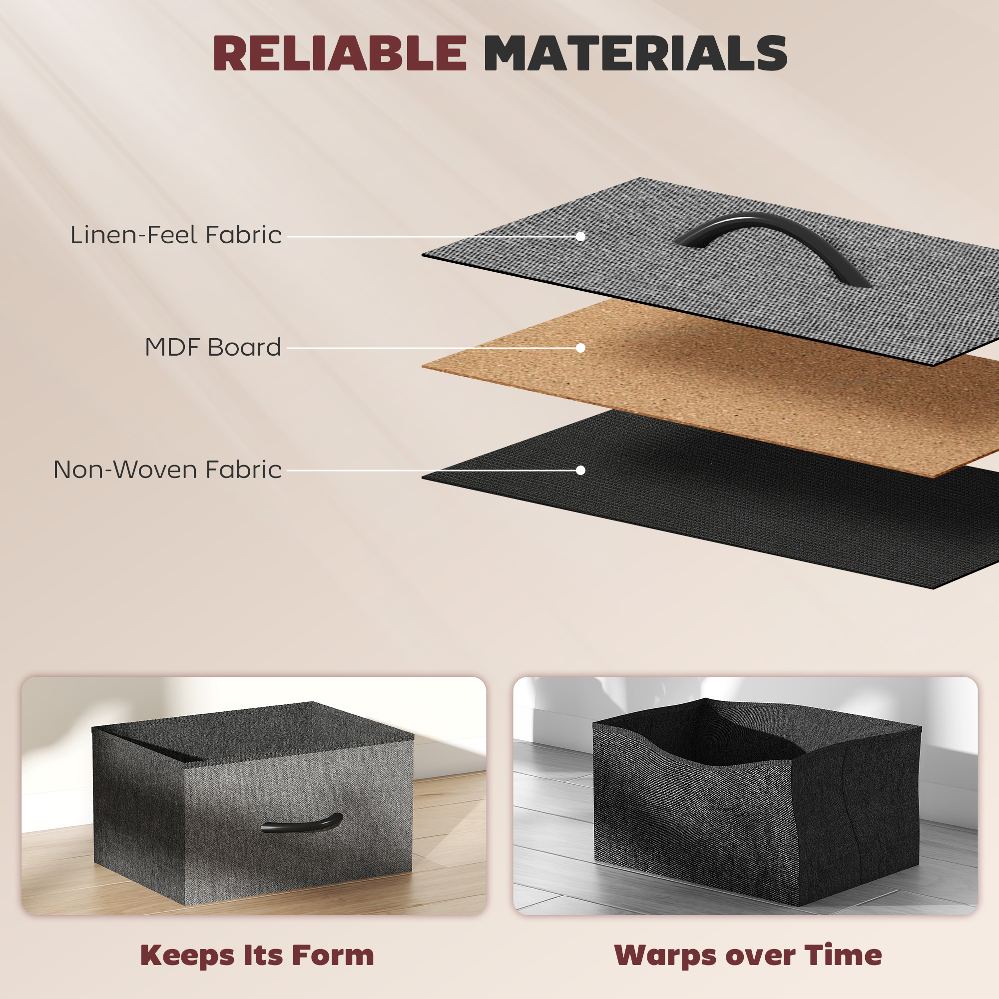 - Foldable drawers collapse flat for compact storage when not in use