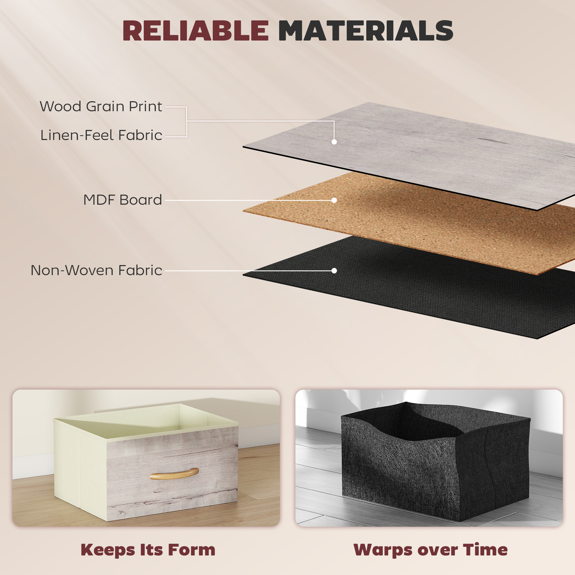 - Foldable drawers collapse flat for compact storage when not in use