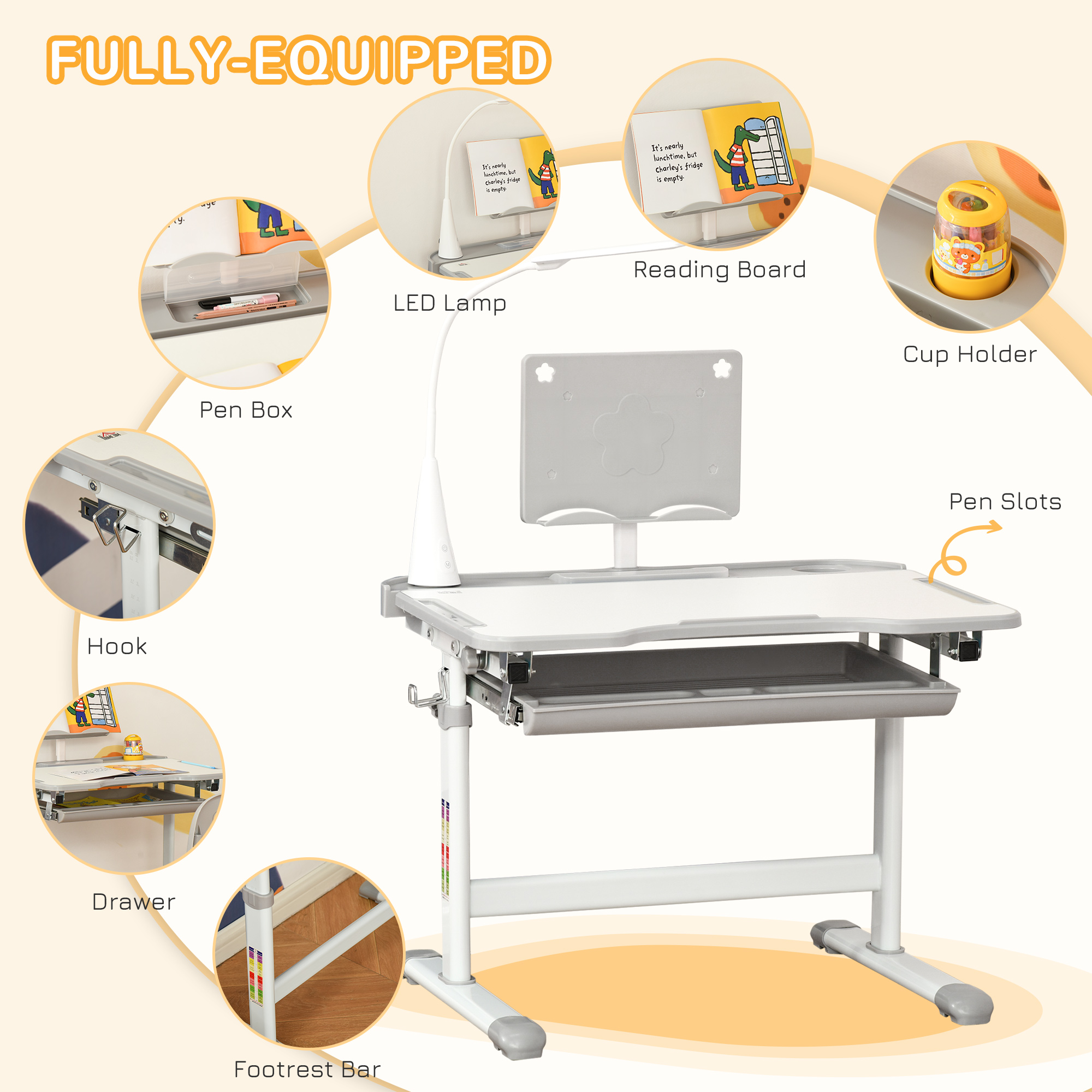 Their own space for endless activities, thanks to this HOMCOM kids table and chair set, which is great for homework, playtime, art projects, reading and enjoying meals. A high backrest and footrest for comfort, whilst the adjustable chair and desk will perfectly match their height – the tabletop is also adjustable, preventing poor posture. There's a USB lamp with three colour temperatures, so their eyes don't strain.