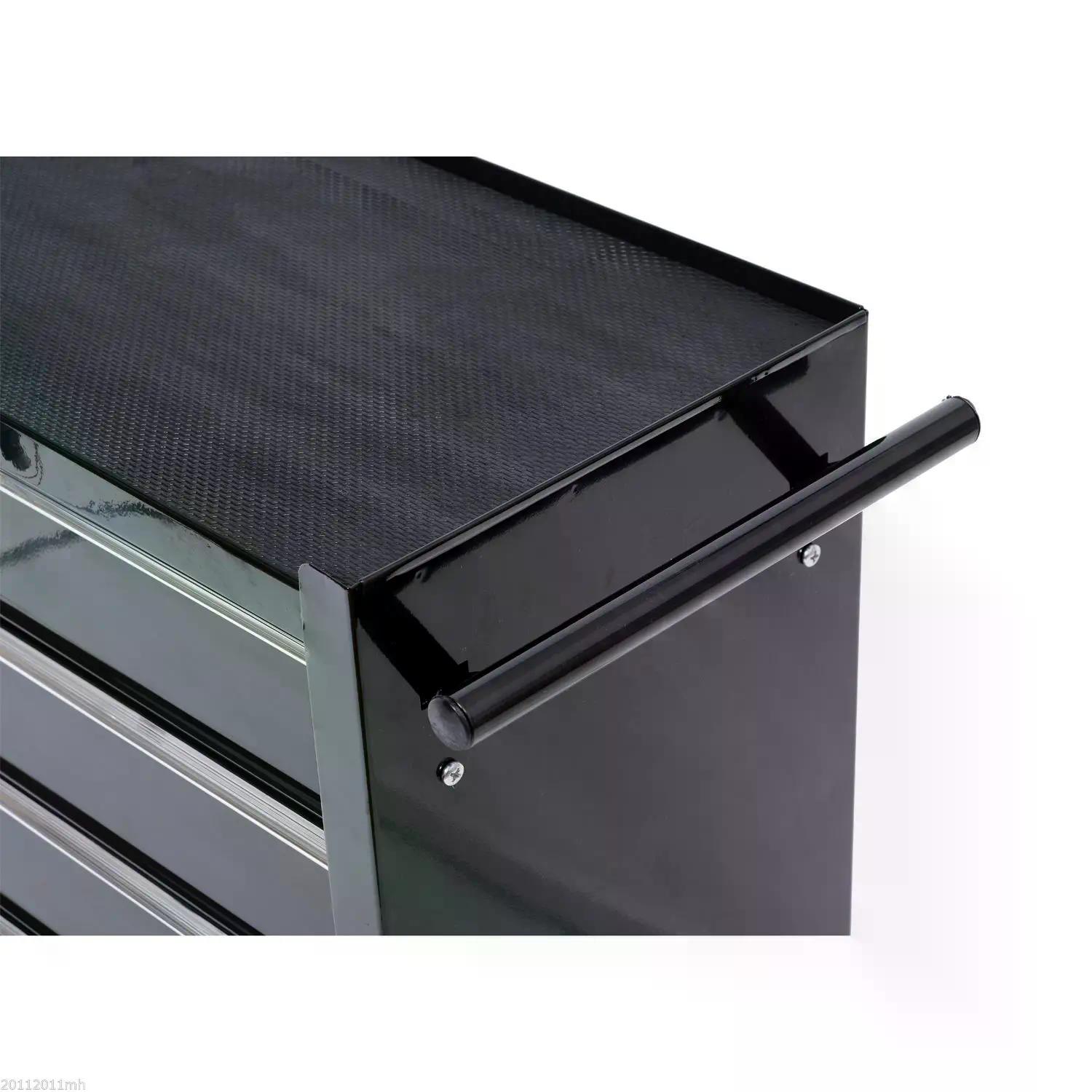 Look no further than this tool chest from HOMCOM for keeping your professional equipment safely stored. It is made with five drawers, giving you lots of room to keep everything organised so you can find what you need easily. A mat on the top provides safe extra holding room so you can grab what you need quickly. Made from powder coated steel, the structure is strong and solid to withstand daily use. Four wheels and a side handle to move around easily. Lockable design, comes with two keys.