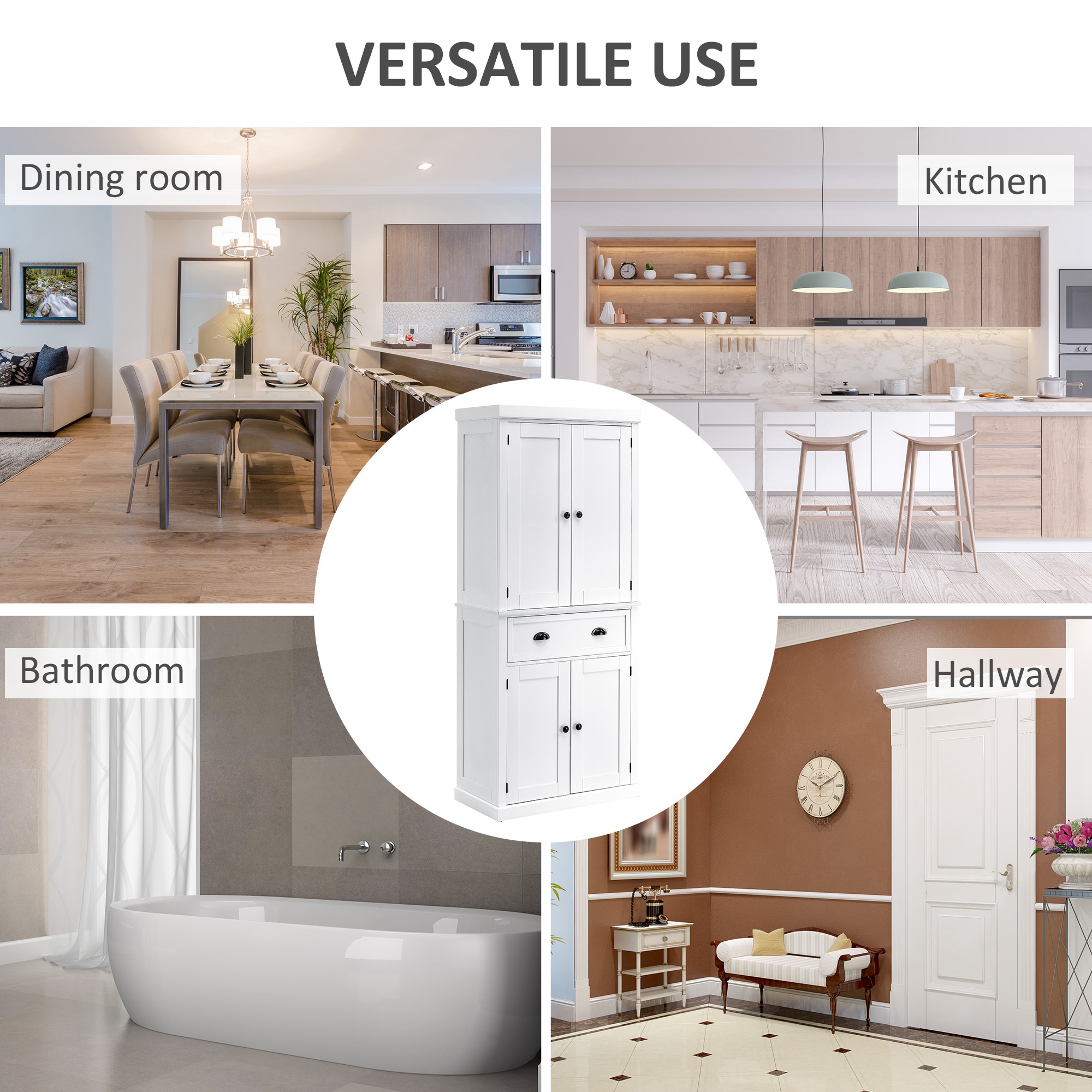 There's no such thing as enough kitchen storage. Ready to make your decision to maximise their storage with the free standing kitchen unit? Made of engineered wood to ensure reinforced strength and stability, this 184cm tall storage cabinet showcasing a top a bottom cabinet with 3 adjustable shelves, alongside a slide-out drawer in the middle which is ideal for storing cutlery. Let modern-looking beauty take centre stage in your home with this kitchen dresser from HOMCOM.