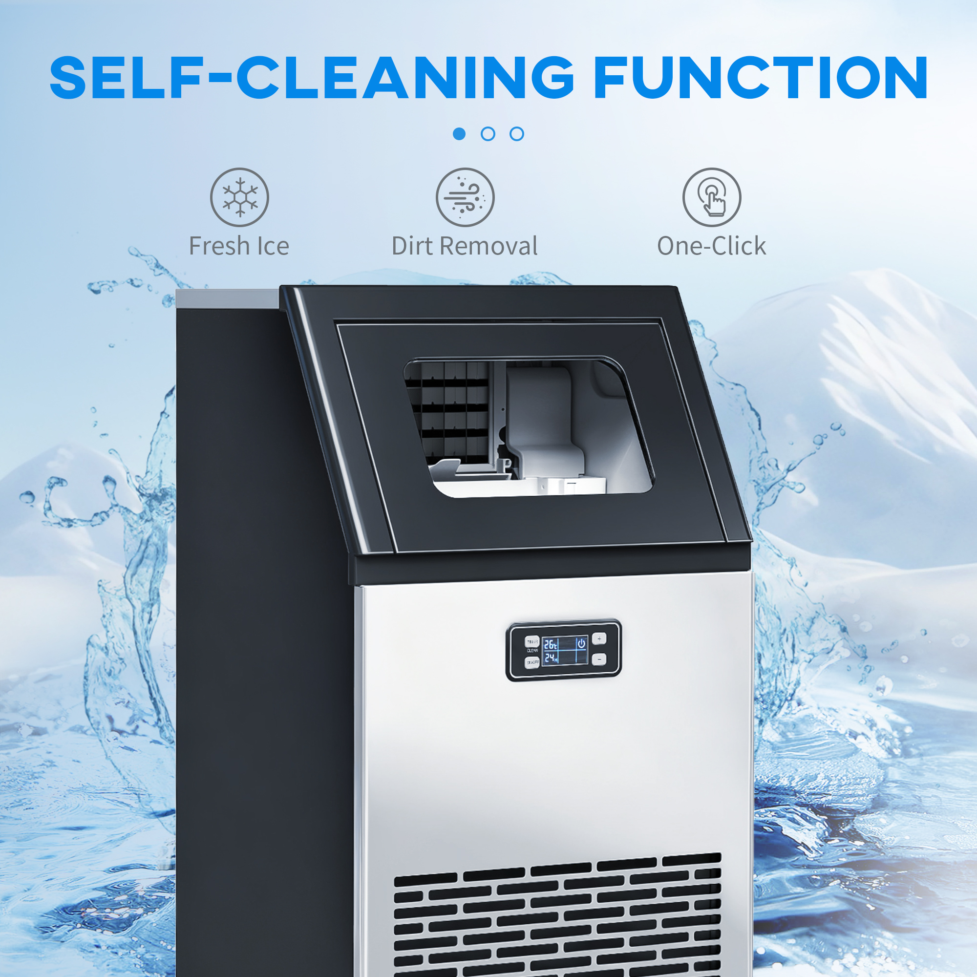 Tired of mid-party ice runs? Keep drinks chilled and guests happy with the HOMCOM ice cube maker, producing up to 45 kg daily. Its smart LCD shows the countdown, while easy controls let you adjust cube size. Watch ice form through the transparent window, enjoy quiet operationand rely on automatic self-cleaning. Sleek design fits homes, pubs, bars, offices, restaurants, cafés and more, making every gathering effortless and stress-free.