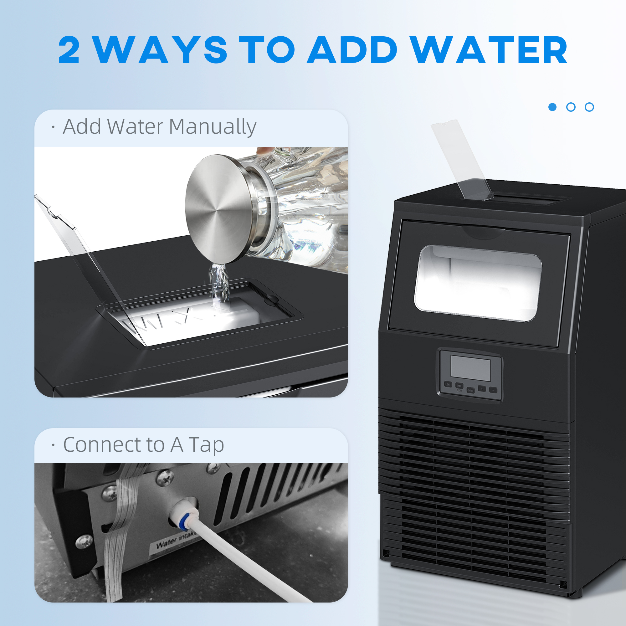 Elevate your chill game with this HOMCOM commercial ice maker machine that crafts 30 kg of square ice cubes daily, delivering 32 cubes every 12–20 minutes. This versatile ice making machine features a front transparent cover, letting you watch the process in action, while its self-cleaning function ensures effortless upkeep. Enjoy fast production, quiet operation and a sleek design suit for homes, pubs, bars, offices, restaurants, cafes and more.
