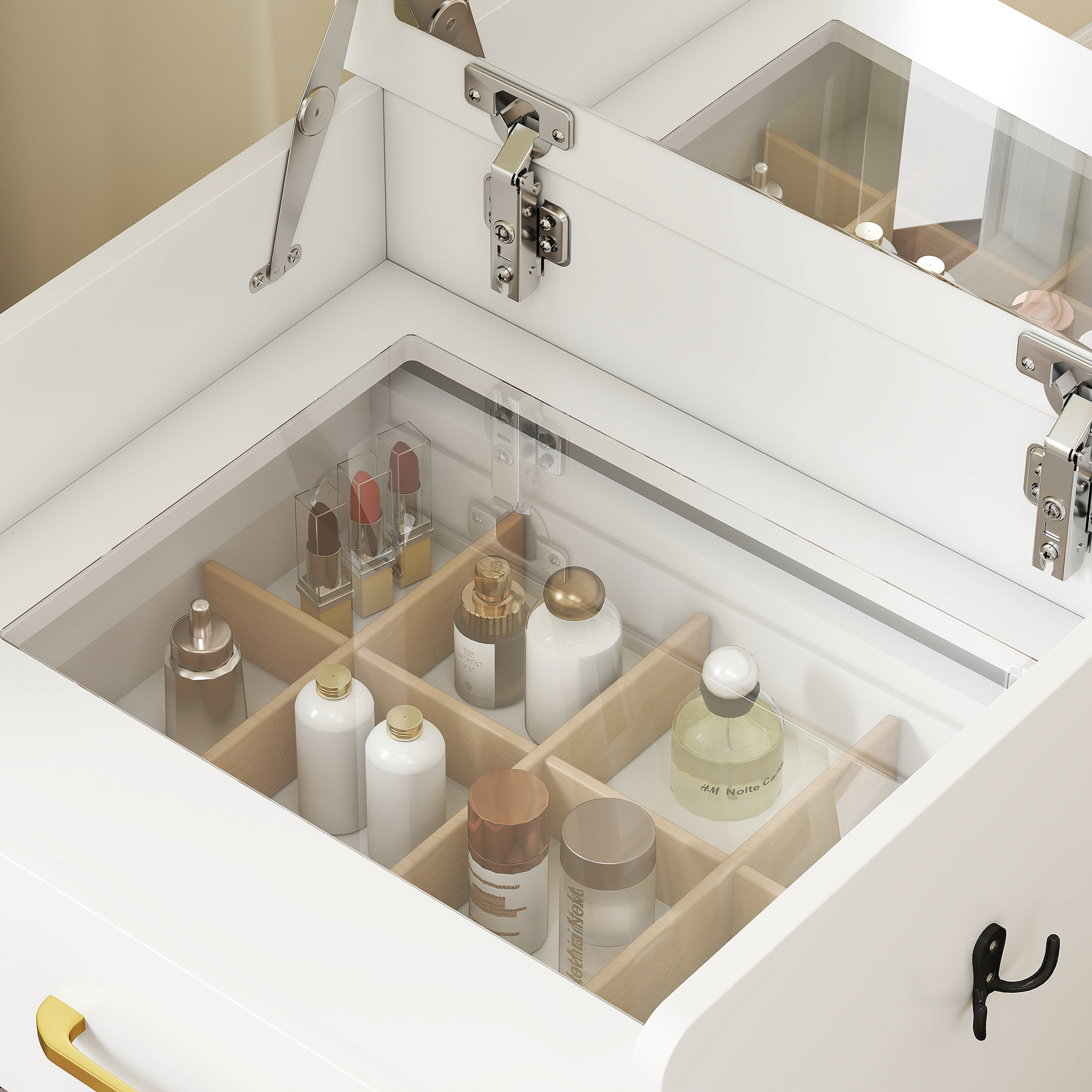- Flip-up tabletop, with mirror: see yourself clearly getting ready