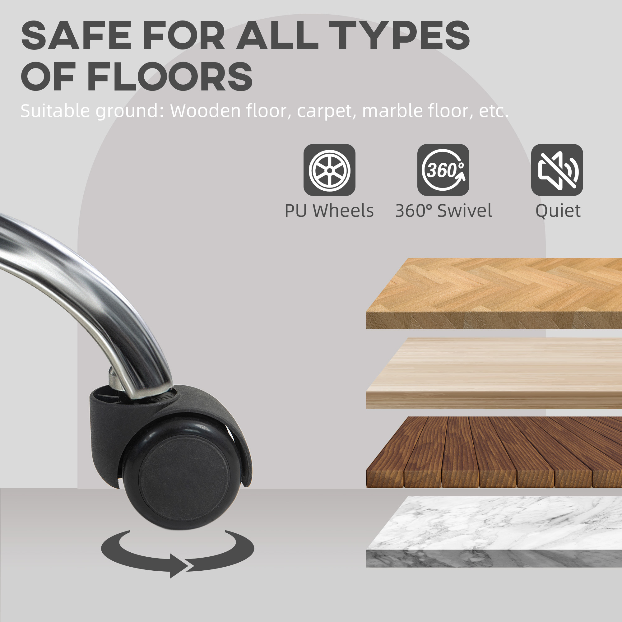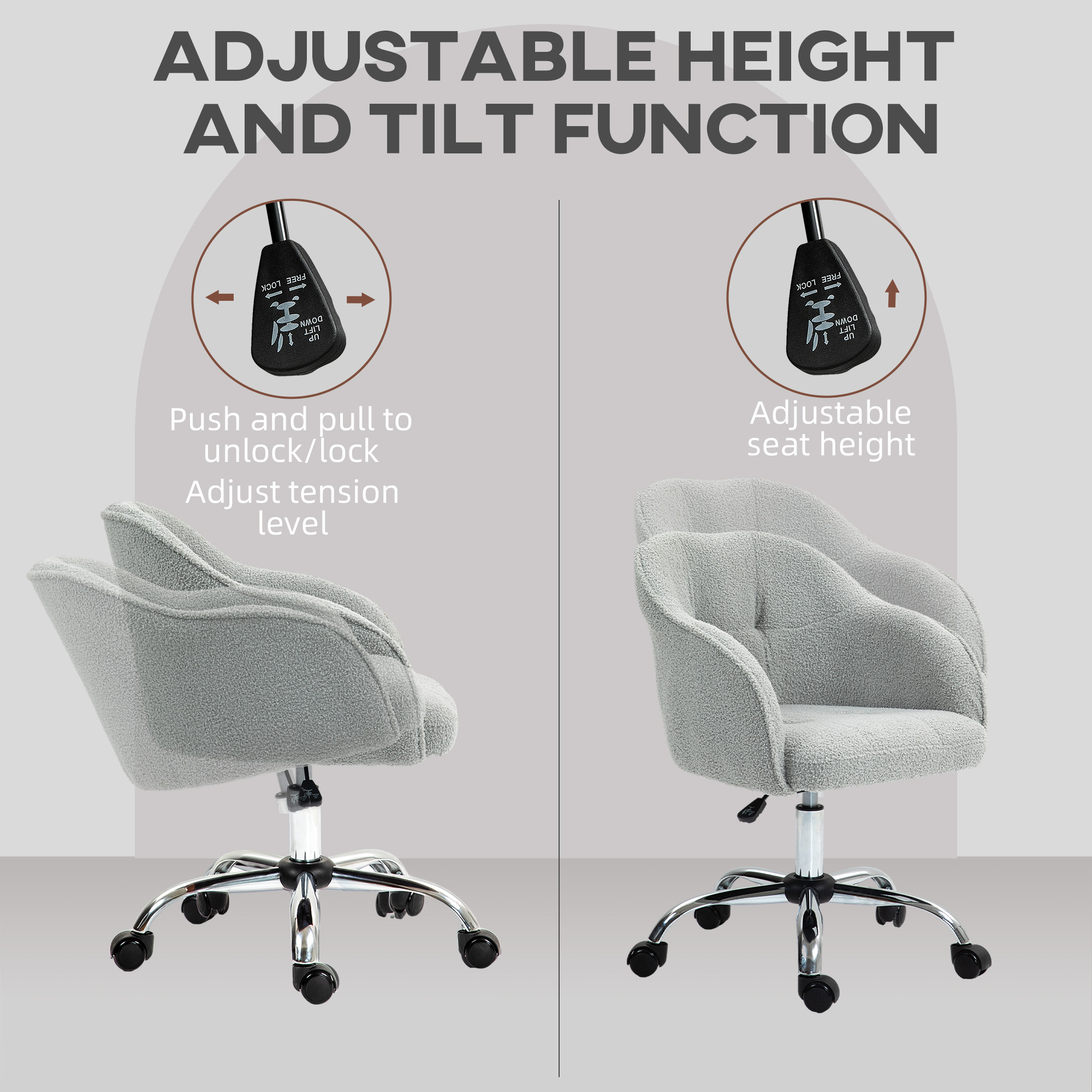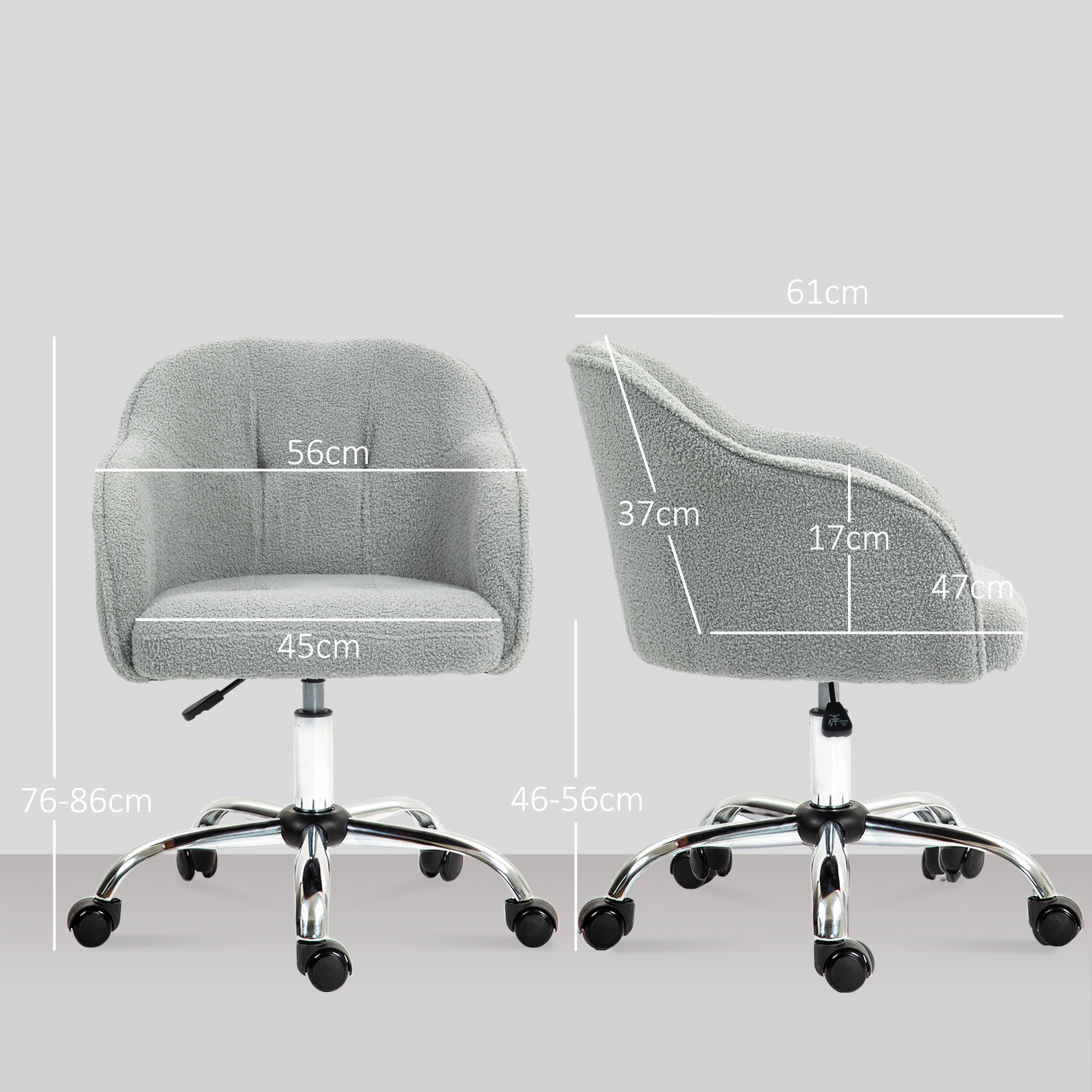 Snuggle into the work day with this HOMCOM office desk chair. The seat is wrappy in a teddy texture of the faux fleece upholstery: it's super soft. You can adjust the seat height between 46-56 cm, so you can sit at a level you want. Filled with sponge to sit comfortably, with a tall back and armrests for support, this small office chair is complete with five wheels to move it around easily.