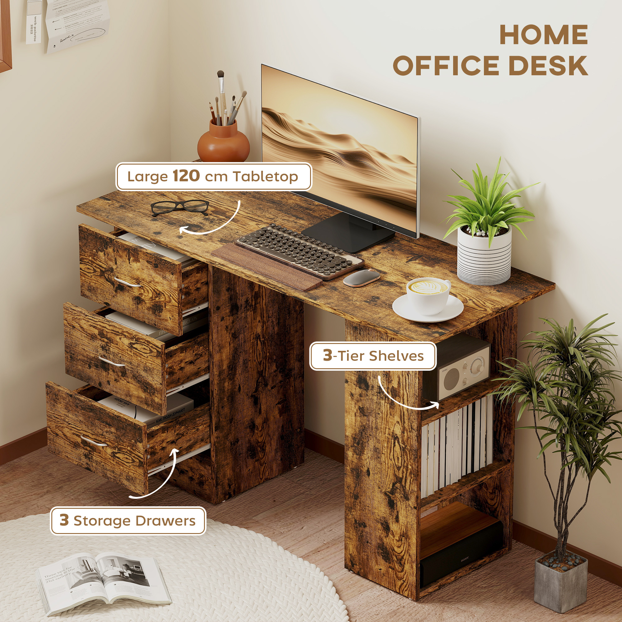 Maintain a contemporary and minimalistic workspace using HOMCOM's desk with drawers. Crafted from MDF, this study table showcases a clean boxy design in a neutral colour, suitable for various home office environments. It offers three enclosed drawers and three open shelves, providing a balanced solution for work essentials and decor. The drawers feature convenient handles for a polished finish.