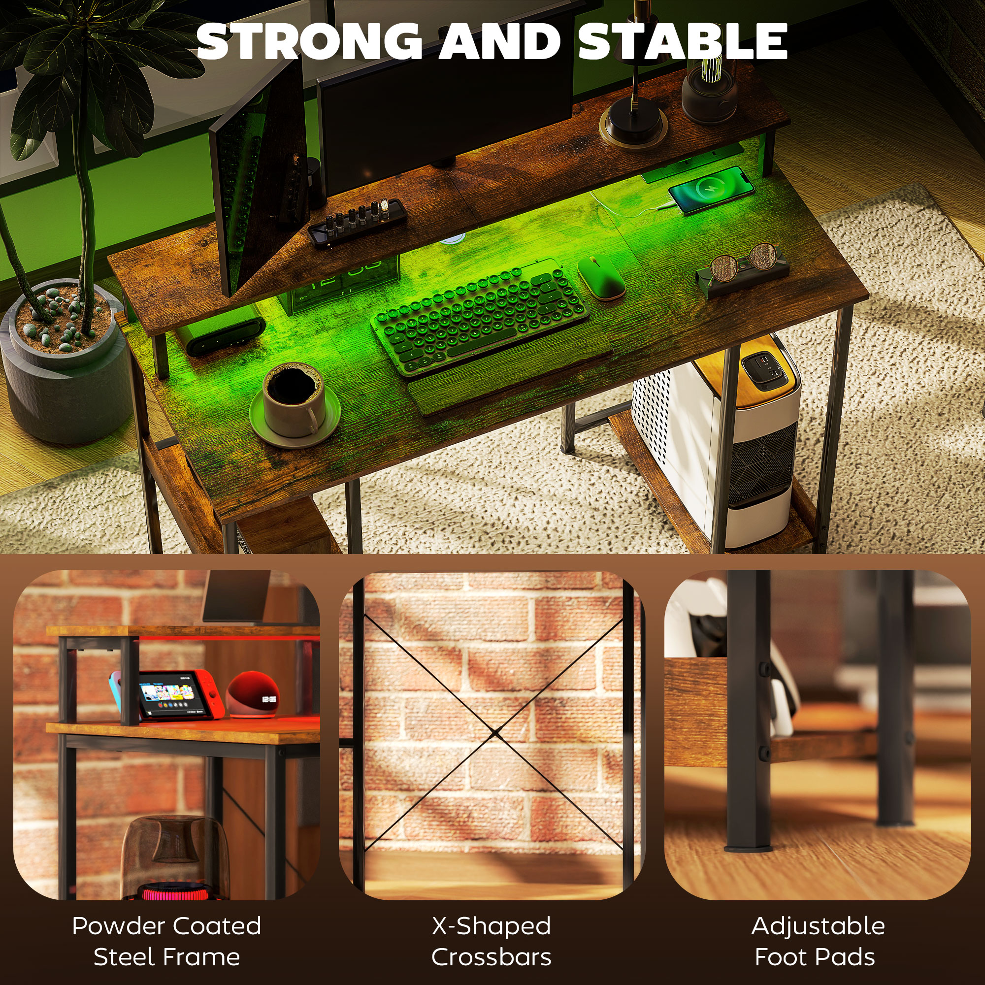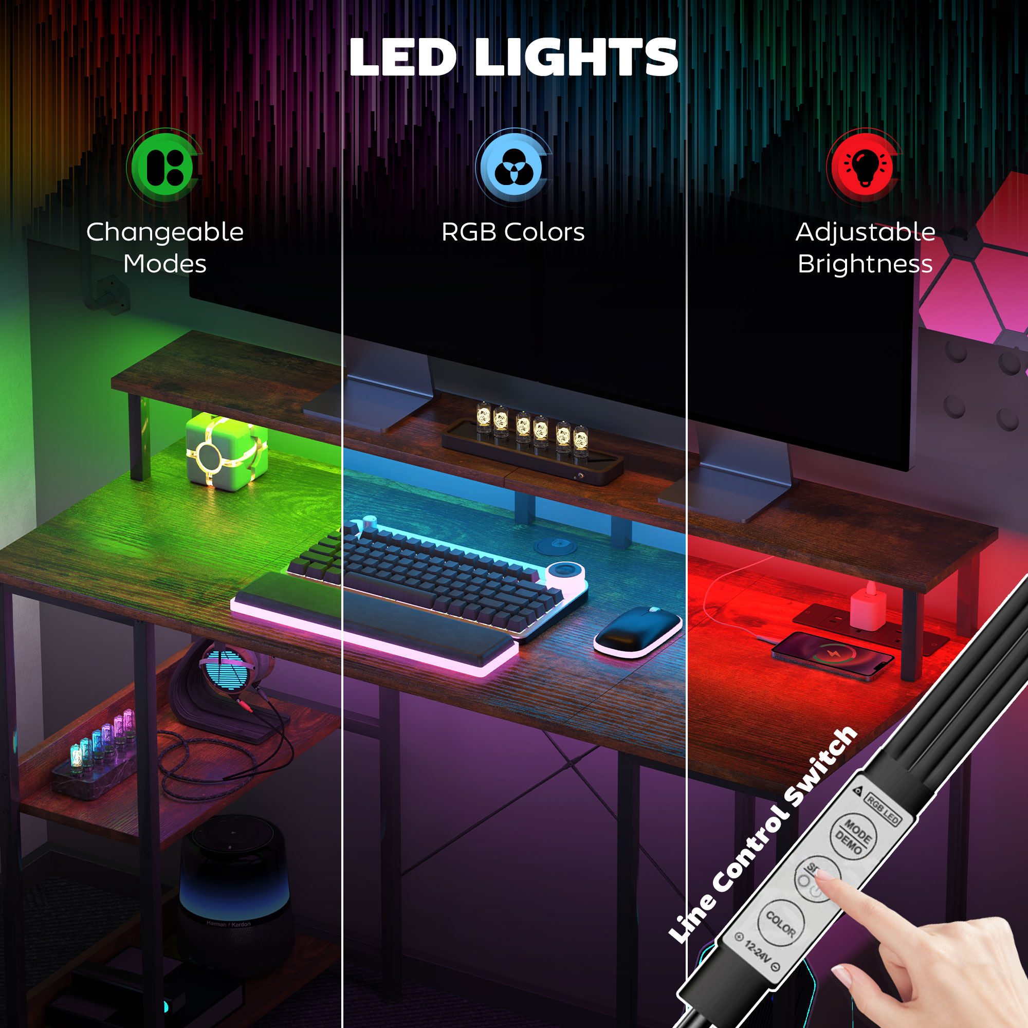 The HOMCOM computer desk offers plenty - the charging station has two UK plug sockets, a USB port and a USB-C socket for keeping electricals powered next to you as you work. With a large desktop to work, the writing desk also has an upper shelf for holding a screen at eye level to reduce neck strain. The RGB lights, with adjustable colours, brightness and modes, allow you to create the ambience you desire.