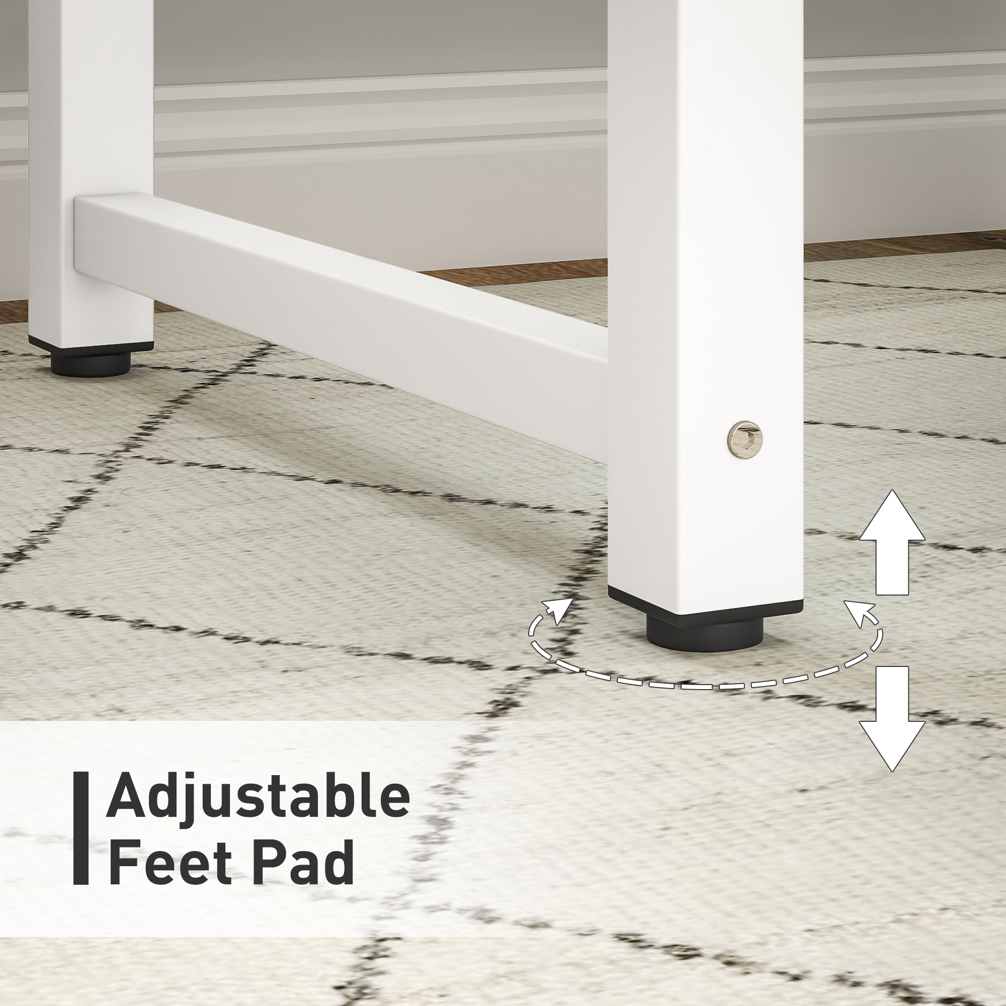 Sometimes, simplicity is key. This HOMCOM computer table proves it. Built with a robust steel frame that supports up to 100kg, it features a sleek, minimalist design with a melamine-coated tabletop that's easy to wipe clean—great for busy, on-the-go lifestyles. Adjustable feet ensure stability and balance at all times, making it an optimal addition to both home and office spaces.