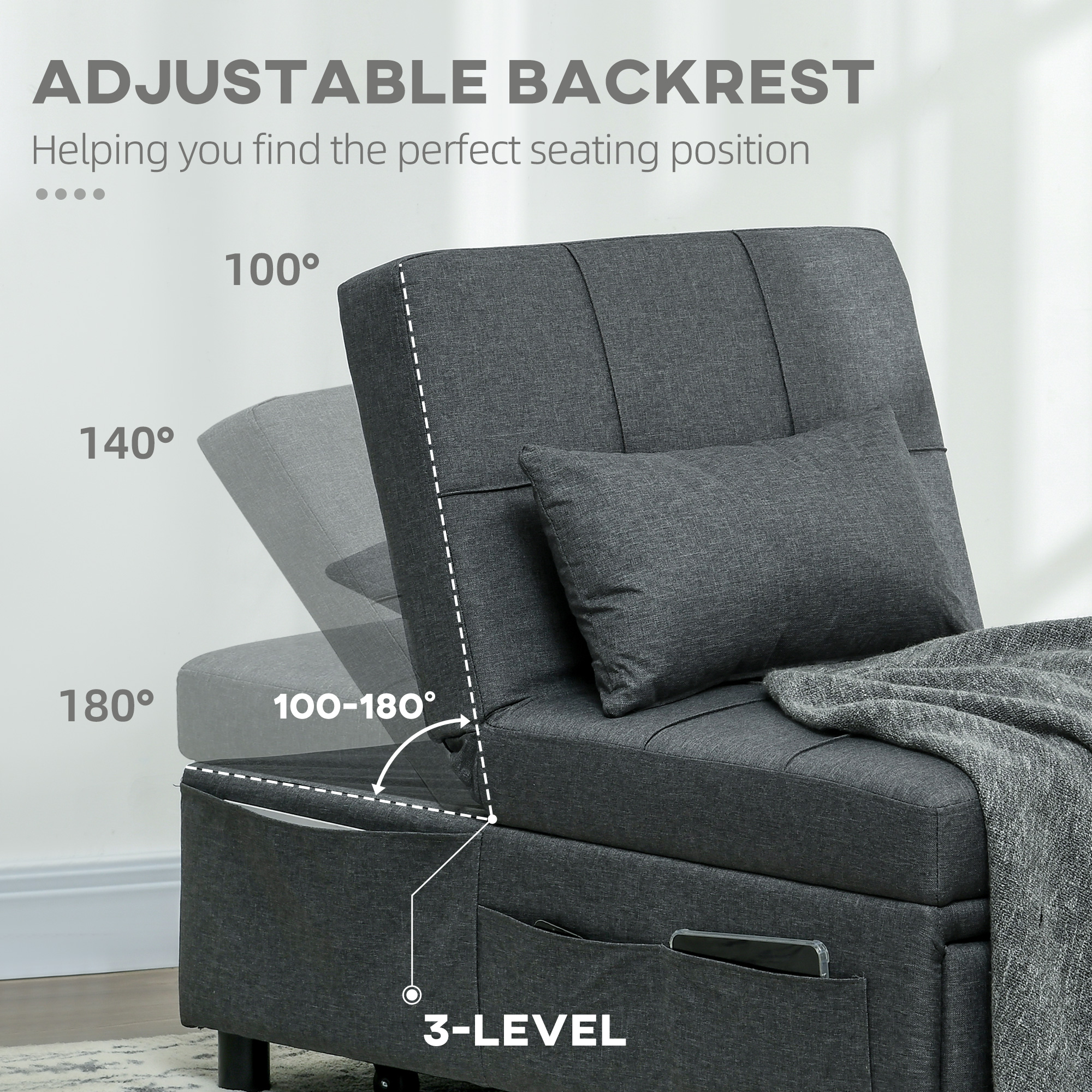 Take a seat to relax and sleep your way. Go for this HOMCOM futon. Whether it's for sleeping, unwinding or taking some time out, you can do it all. Set the back to a choice of three different positions - lay back to an angle most comfortable for you. Filled with soft sponge to sink into and linen-look upholstery, this piece is comfortable day and night. You're supported too, thanks to it's wooden frame. Complete with handy side pockets.