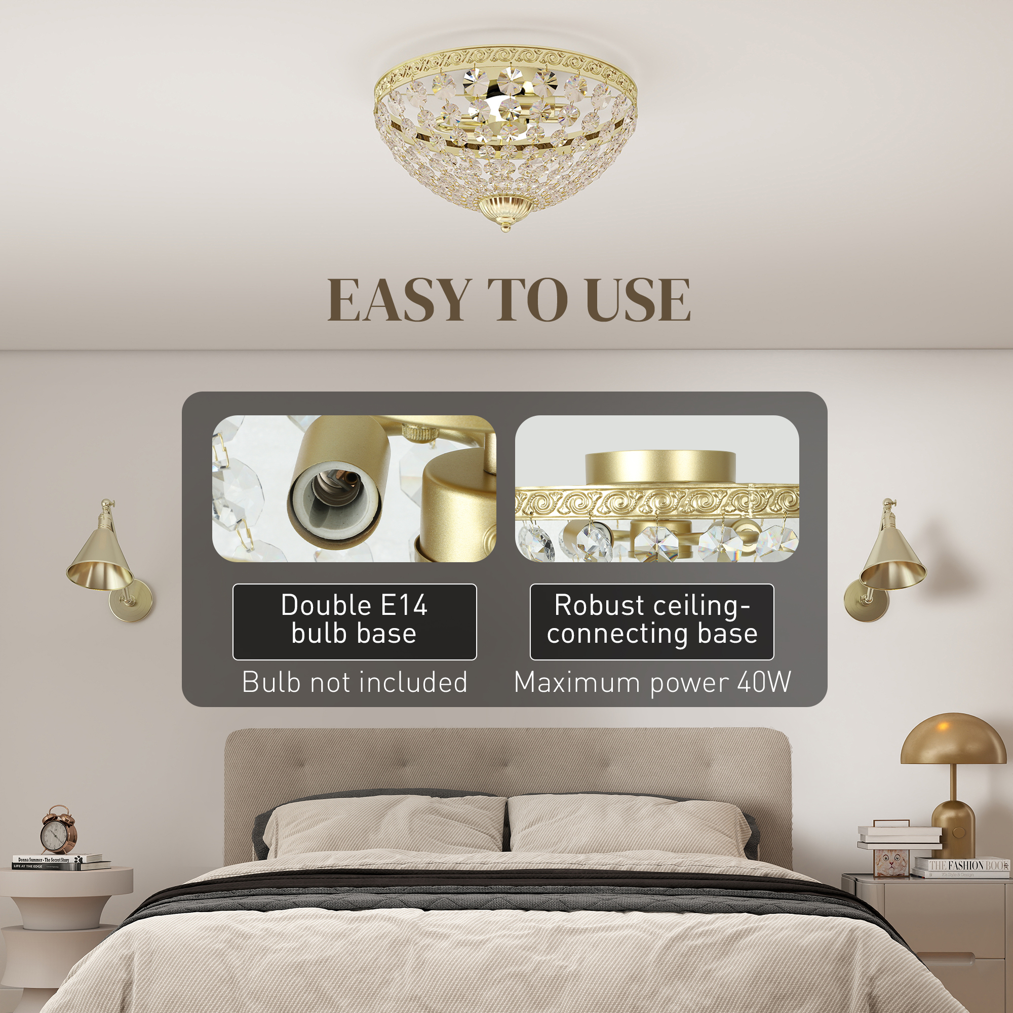 Tired of dim lighting and lackluster decor ruining your evenings? Those dull corners can make a room feel uninviting. Let the HOMCOM crystal ceiling light transform your space. With 168 beads casting enchanting reflections and dual bulbs providing even light, this chandelier creates a warm, relaxing atmosphere. Its timeless gold tone base and crystal details elevate your home, making every moment feel special and bright.