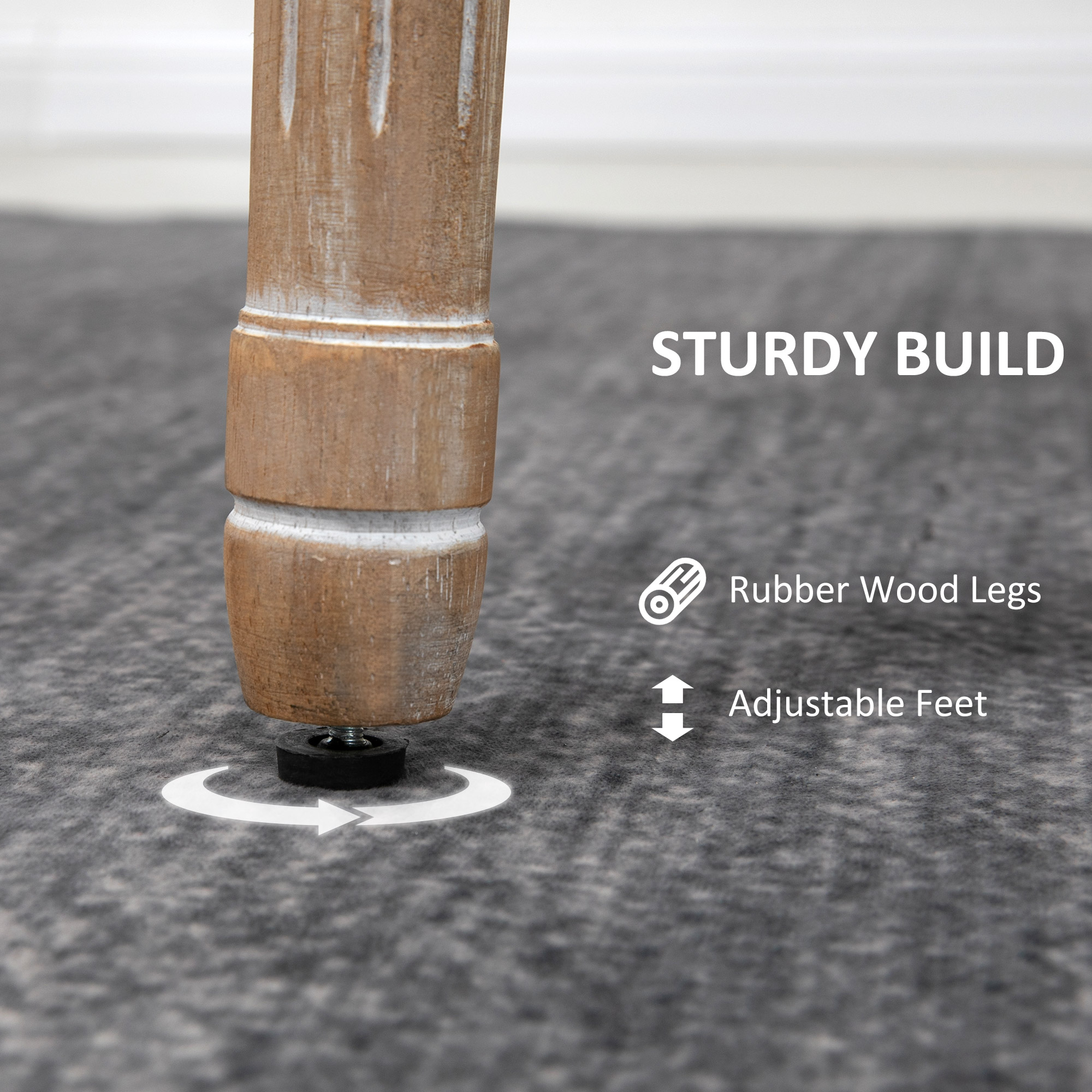 - Adjustable feet for balance, also gently protect floor from light marks