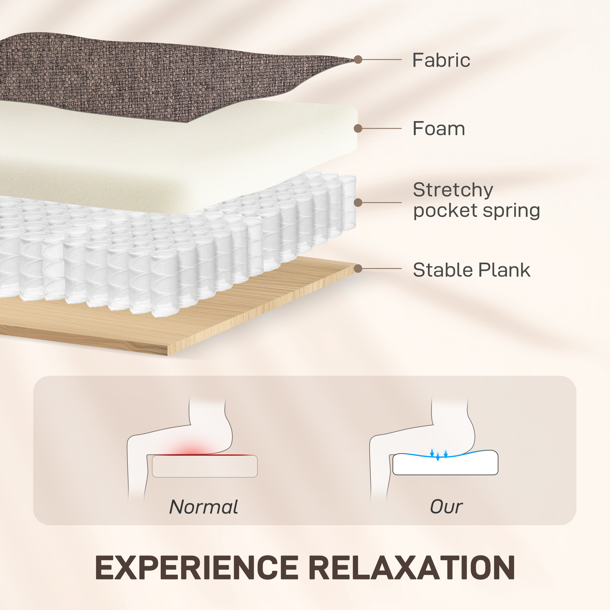 - Material: Linen (100% Polyester), Foam, Steel, Multi-Layered Board