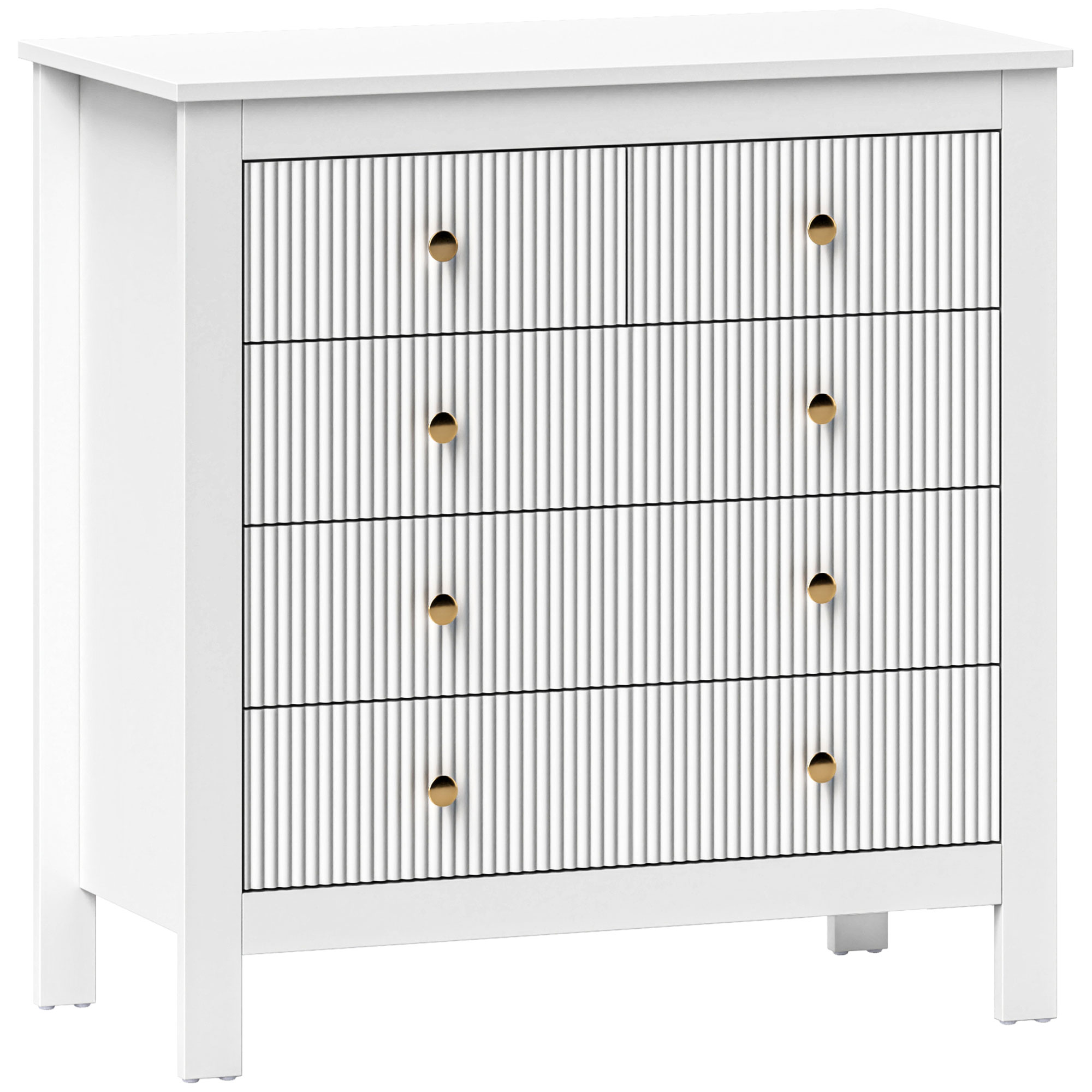Bring effortless elegance and everyday organisation to your bedroom with this beautiful white 5-drawer chest of drawers from HOMCOM. Its clean, textured drawer fronts and sophisticated gold-tone knobs create a stylish, timeless look that suits everything from minimalist spaces to cosy modern interiors.