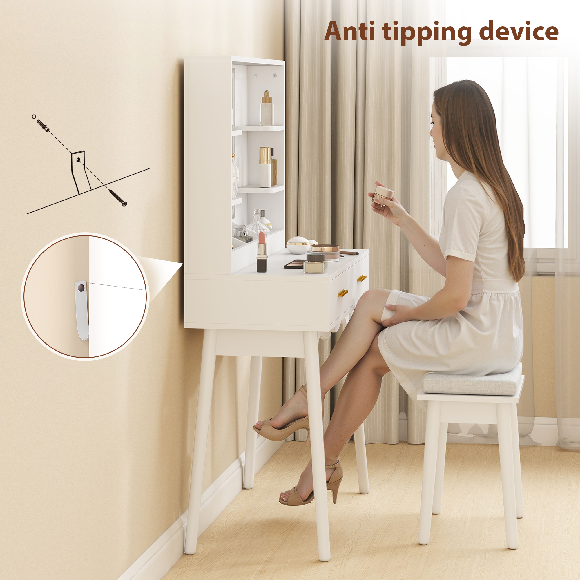 - Two drawers, four shelves and three compartments offer plenty of storage for beauty products. Keep them all together