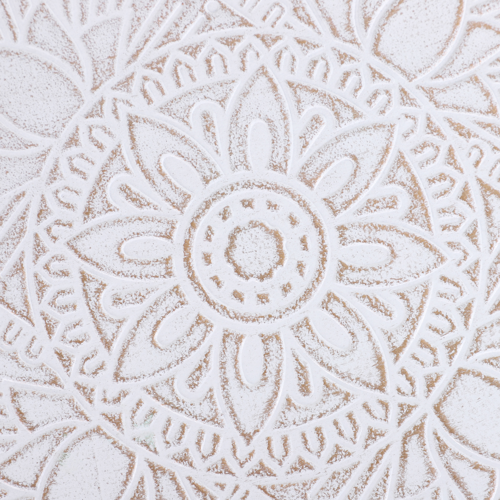 Bring beauty into your everyday surroundings with this side table from HOMCOM. Using MDF for enduring strength and resilience against everyday wear, the tabletop is crafted into a shallow saucer design, with raised edges to prevent anything from falling off and breaking. In a fresh white tone which brightens up your home instantly, the saucer is covered in flower etching all over for an elegant look, with water-resistant paint all over for extra protection.