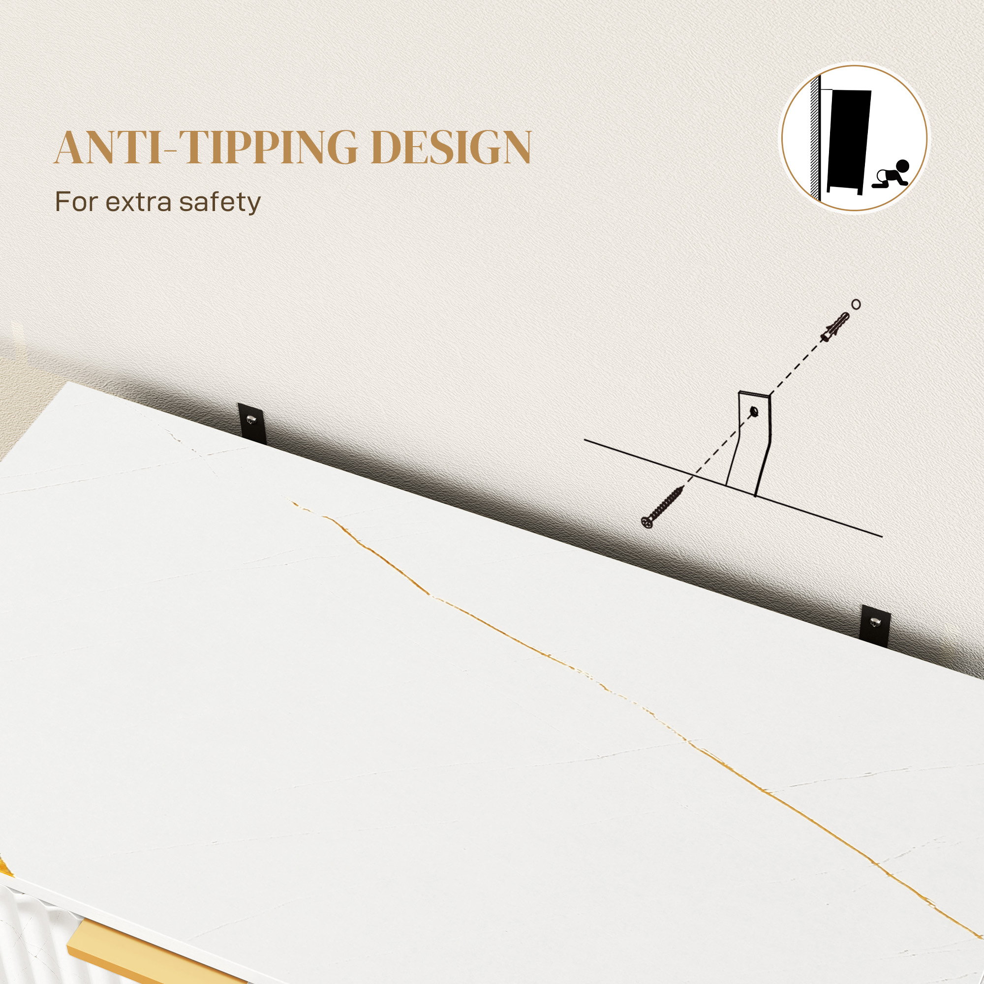 - Elegant unit: white colour, with ridged front for texture and gold coloured accents