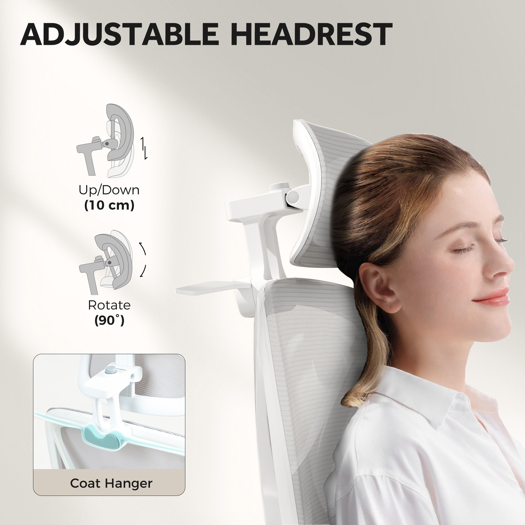 - Headrest rotates and adjusts height, 3D armrests adjust forward/backward, up/down and rotating