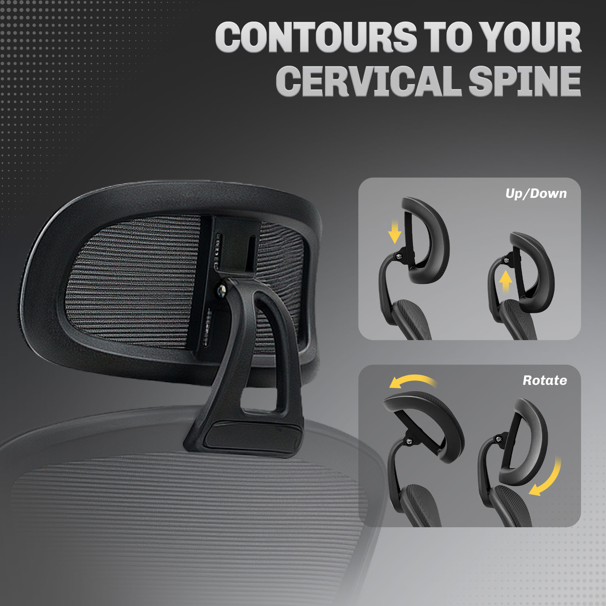 - Height-adjustable lumbar support and left/right, up/down headrest for personalised support