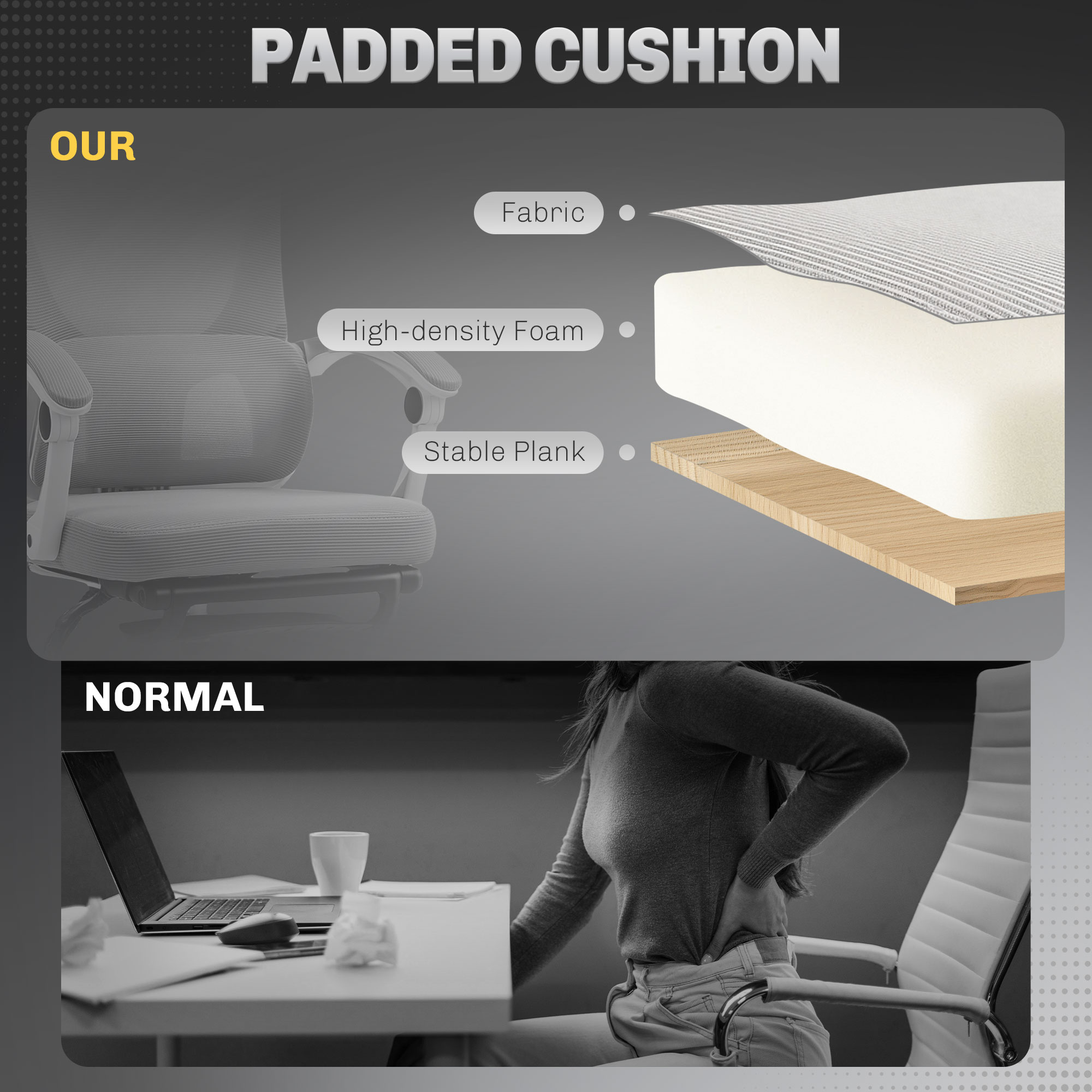 - High-density foam seat and mesh fabric back for cool comfort