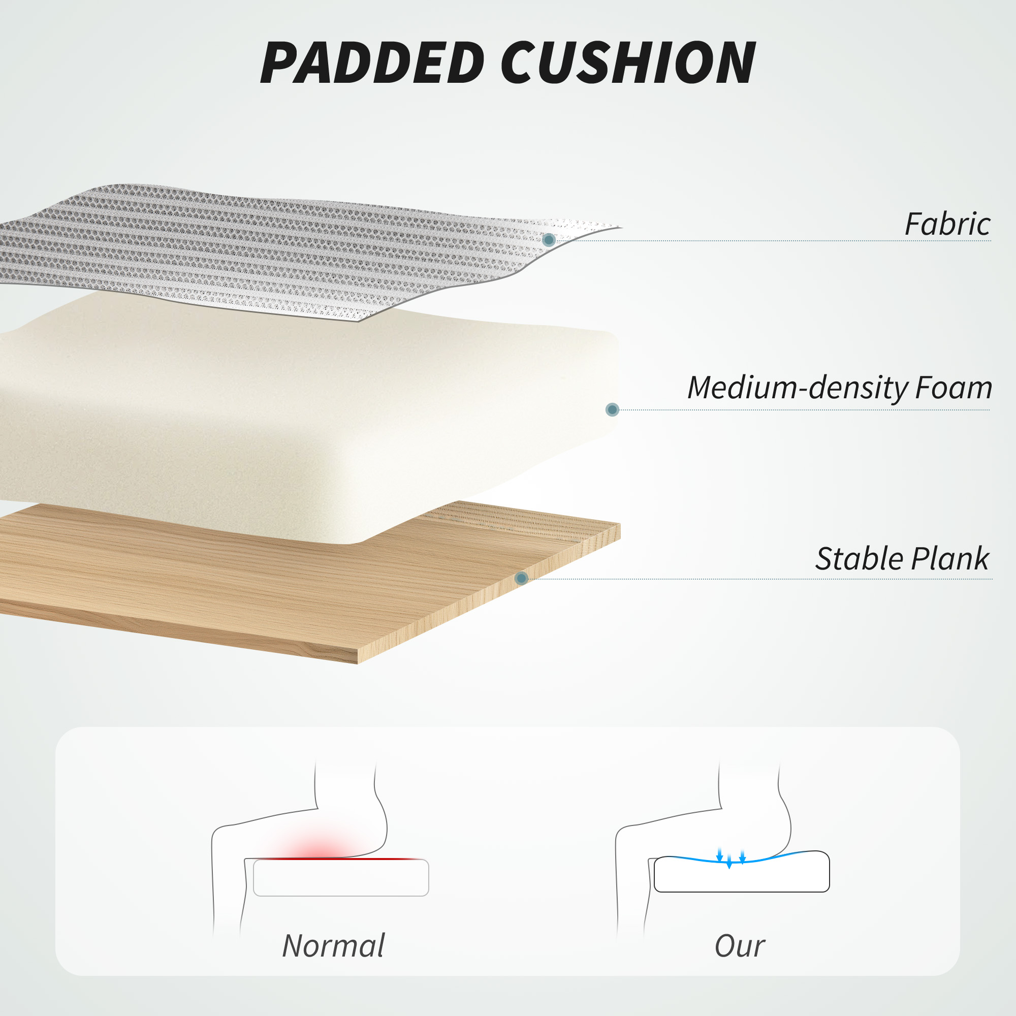 - High-density foam padding offers enduring seat comfort