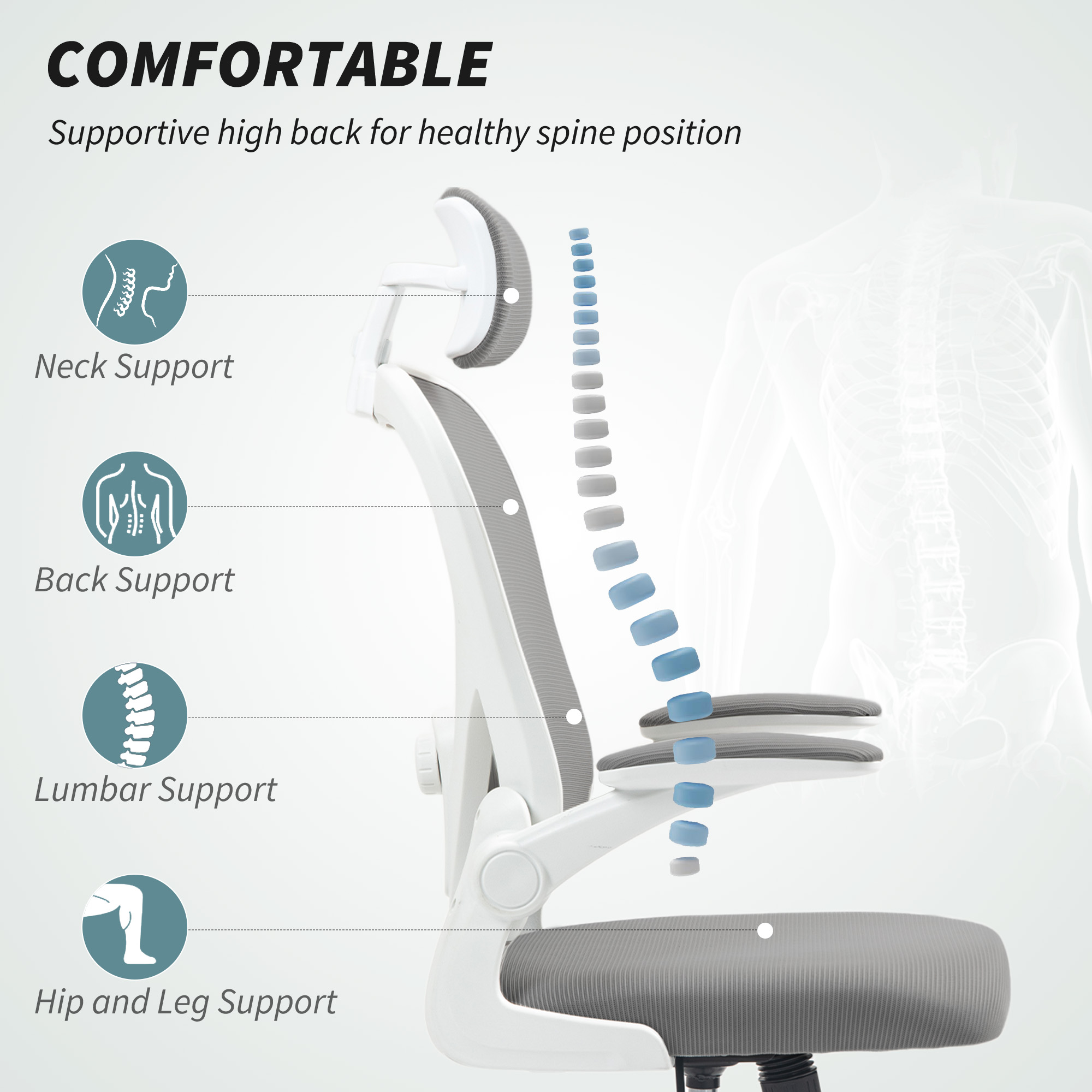 Discover the comfort of the HOMCOM ergonomic chair, a must-have office chair for home office setup. Enjoy customisable support with a headrest and lumbar support that adjusts to your preferred positions. Wrapped in breathable mesh and high-density foam, it's the great swivel chair to enhance your productivity and comfort. Suitable as a desk chair for home office or bedroom.