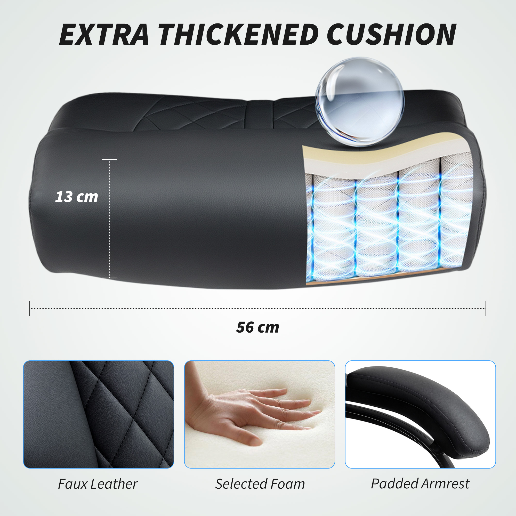 Long hours at your desk can lead to discomfort and fatigue. This HOMCOM faux leather office chair is here to prevent this. With the padded spring seat cushion, you'll be kept comfortable for as long as you work. Its gentle tilting feature allows you to unwind and recharge whenever you want. Complete with five wheels to move it around easily.