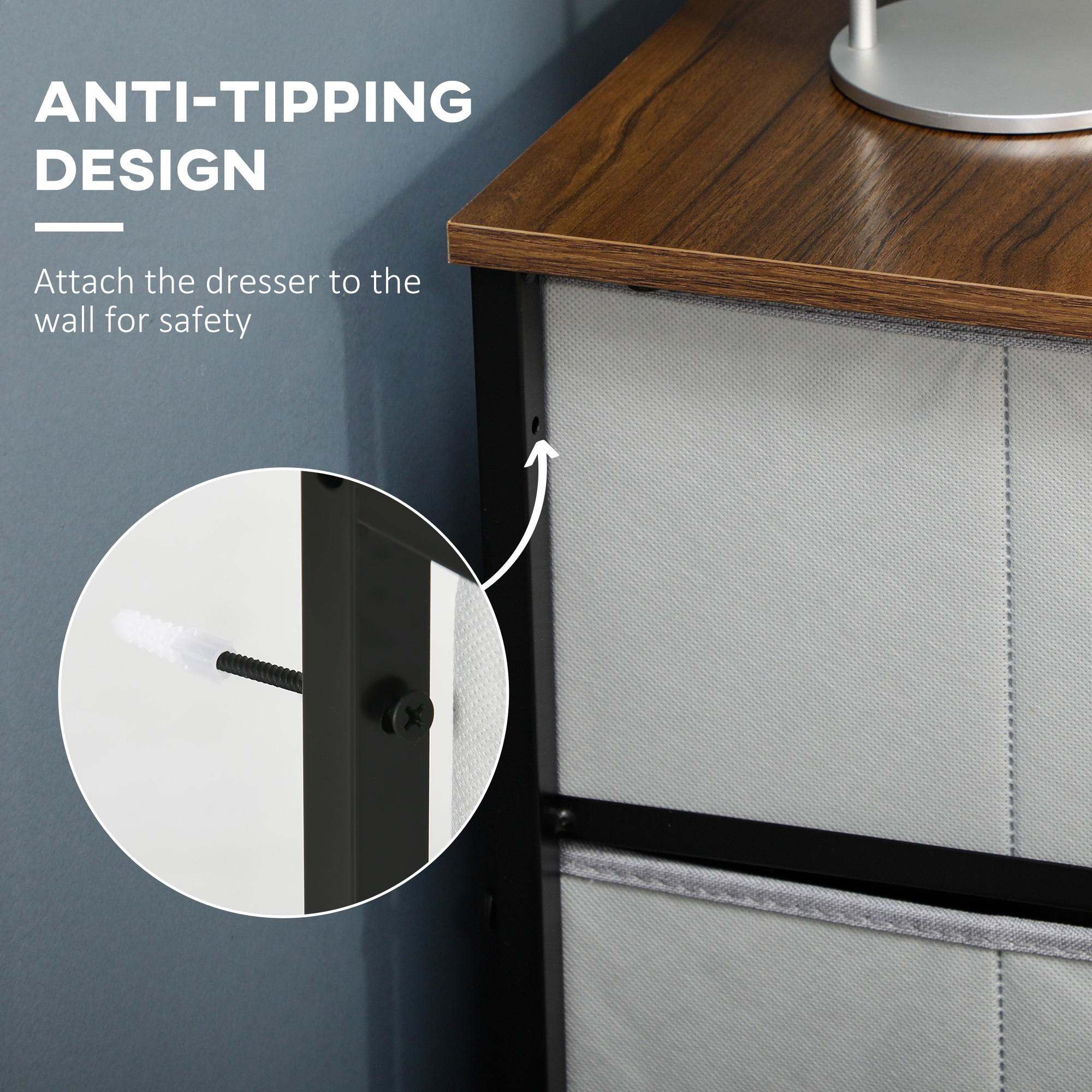 Home storage with this HOMCOM fabric chest of drawers. The six fabric drawers offer room for lots of things - keep t-shirts, tops, bottoms and more organised. The wood-effect top offers more room: a great place to display your favourite photos. The steel frame makes a strong core, with adjustable feet for balance. Comes with anti-tipping straps for safety. Use all over the home and office.