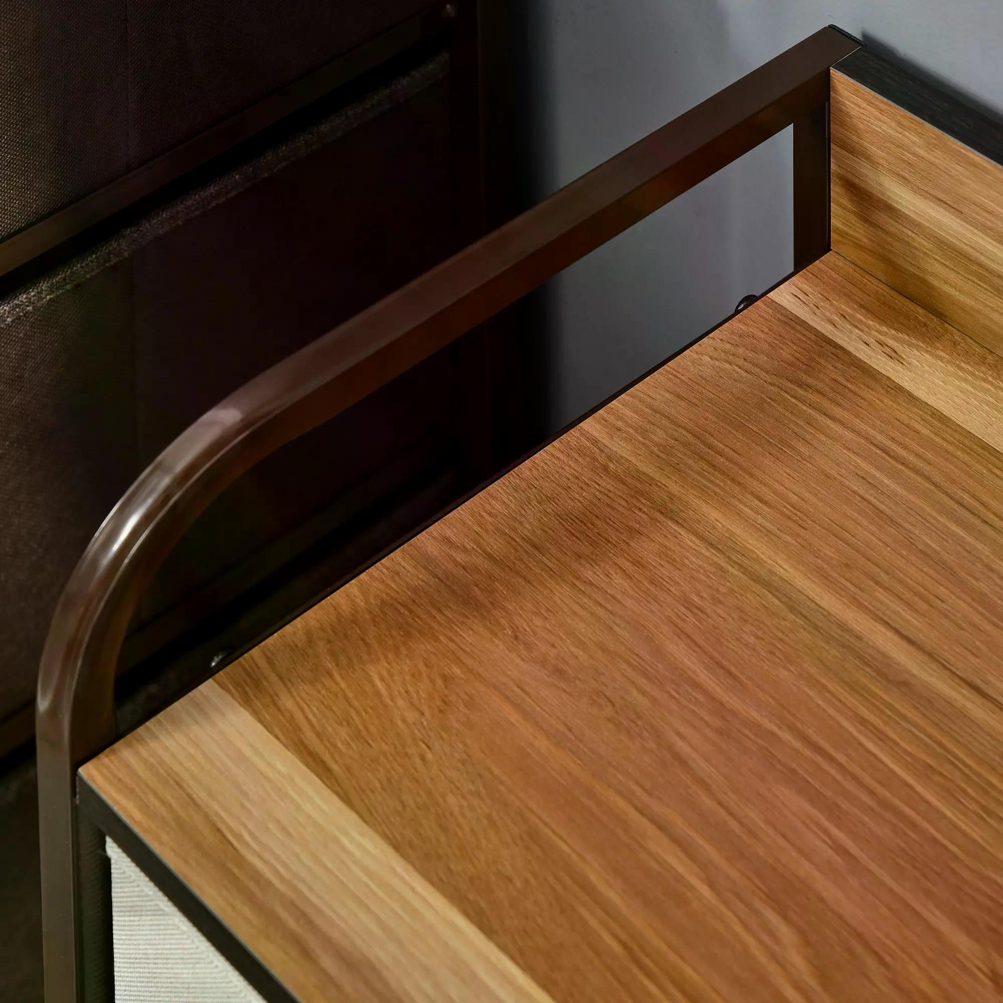 - Linen-feel drawers can be removed and folded. Comes with handle to open and close