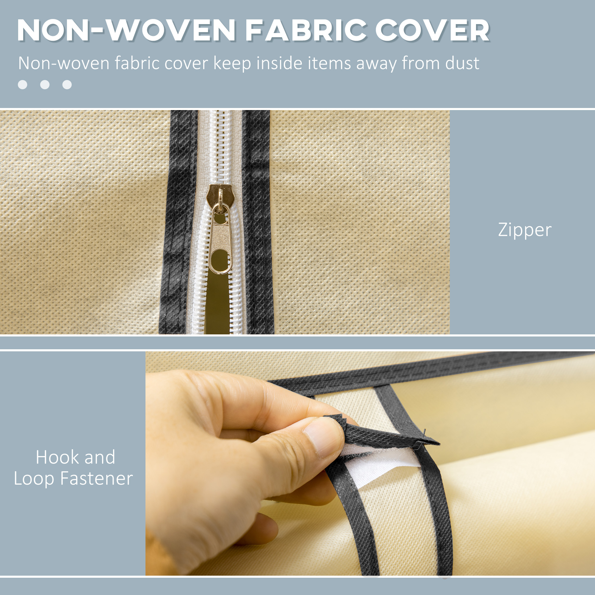 A cloth wardrobe is a great temporary - or even permanent piece for any bedroom and living space. This HOMCOM piece comes with a hanging rail for longer garments, with six shelves to hold plenty of folded pieces. A powder coated steel frame for a strong core, which supports up to 45kg. It comes with a fabric cover to offer protection when needed and a roll-up door to finish.