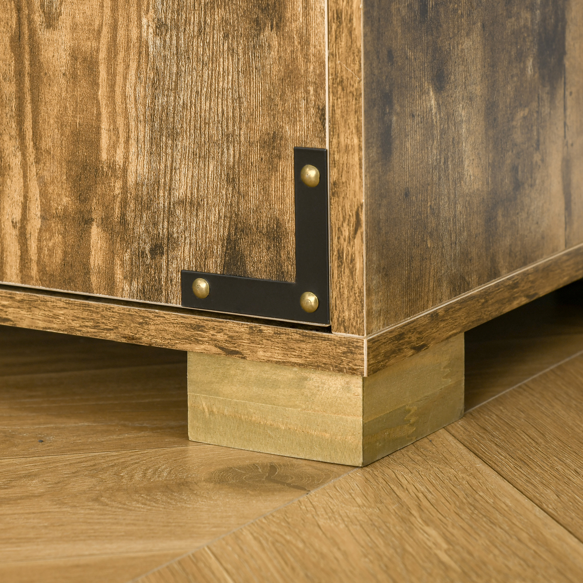 The trendy industrial-style look has been given an upgrade: this stylish cabinet from HOMCOM. Taking a mixed wood-effect all over, it's fitted with black metal corner accents for that rustic edge we're so used too. Inside, when you open the four doors, there are two shelves in both halves, giving you plenty of room for keeping your home/office space tidy. It's made from MDF, so the structure is durable and sturdy, finished with anti-tipping straps for safety in the family home.