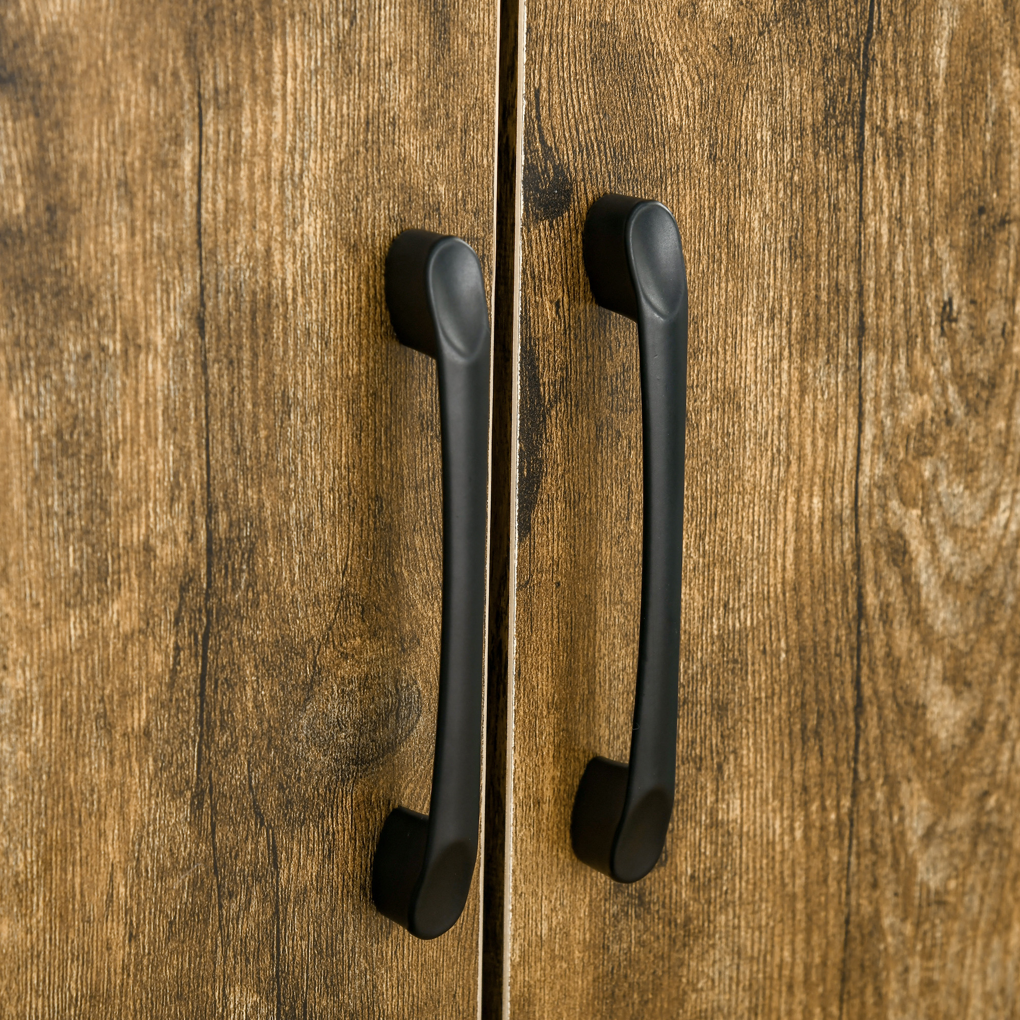 - Distressed wood-effect, with black metal hardware - a unique, rustic-looking design