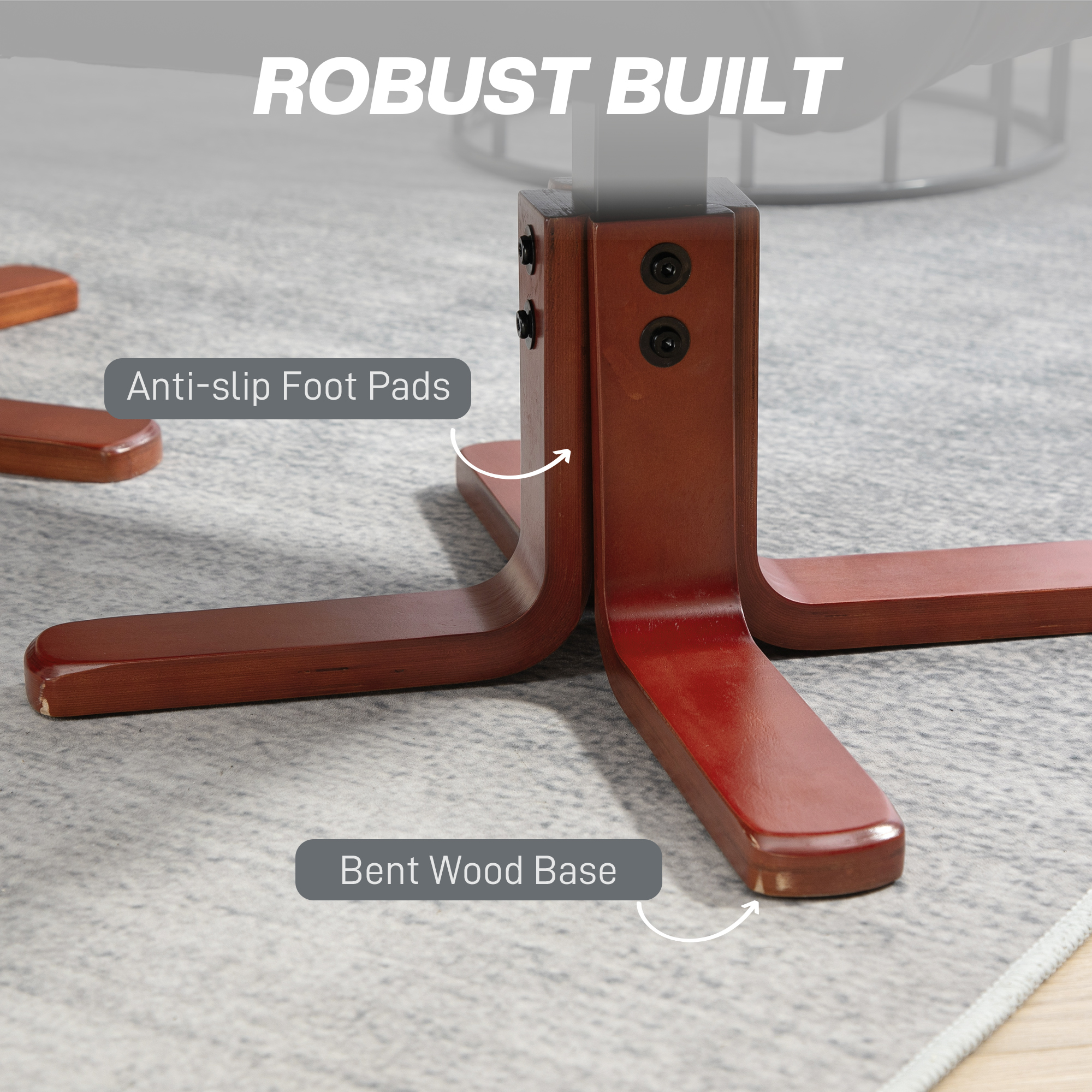 - Bent wood base for strong support, with anti-slip feet