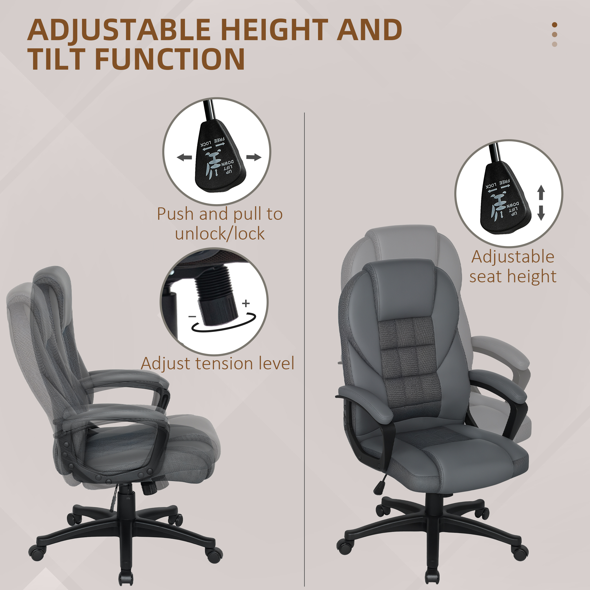 Complete your workspace with this HOMCOM stylish computer chair. It's wrapped in faux leather upholstery, with comfortable foam padding and breathable mesh on the back. Adjust the height between 44-54 cm; sit at a level you want. Five smooth wheels make this comfortable office chair an easy piece to move around, whenever.