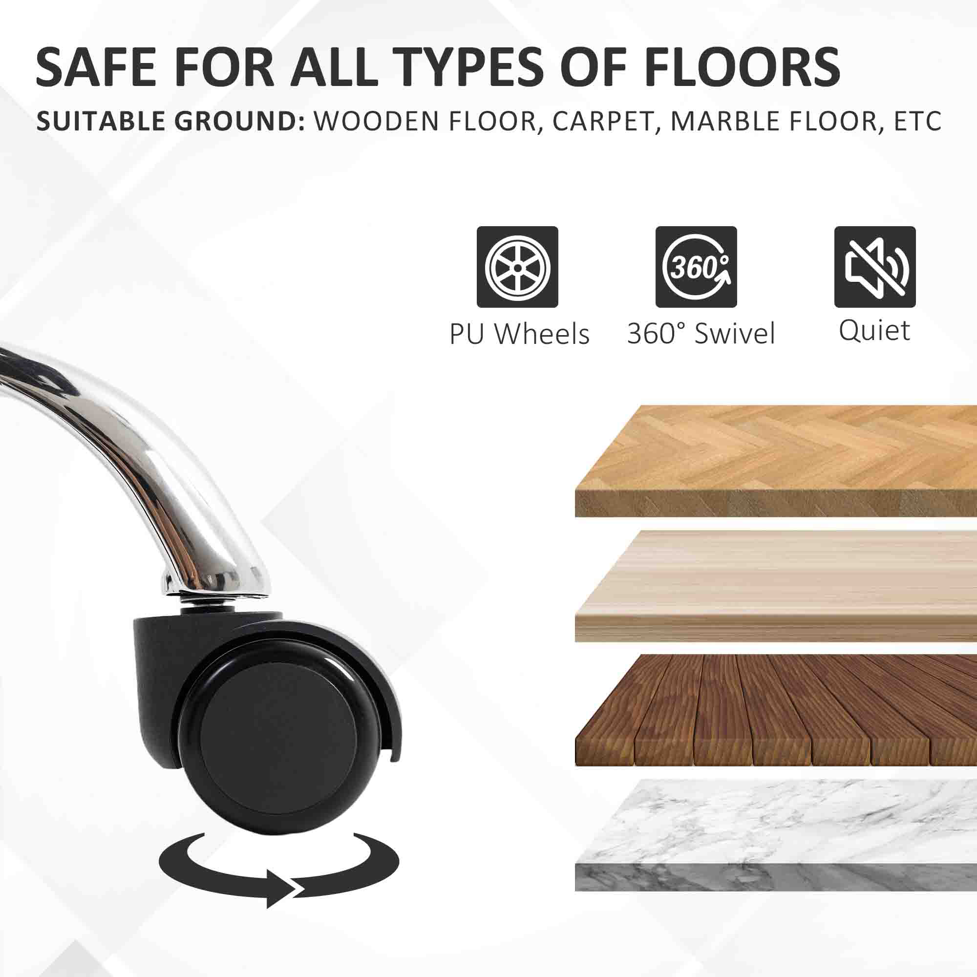 - Five wheels to move chair around easily, quietly and floor-friendly both seated and empty