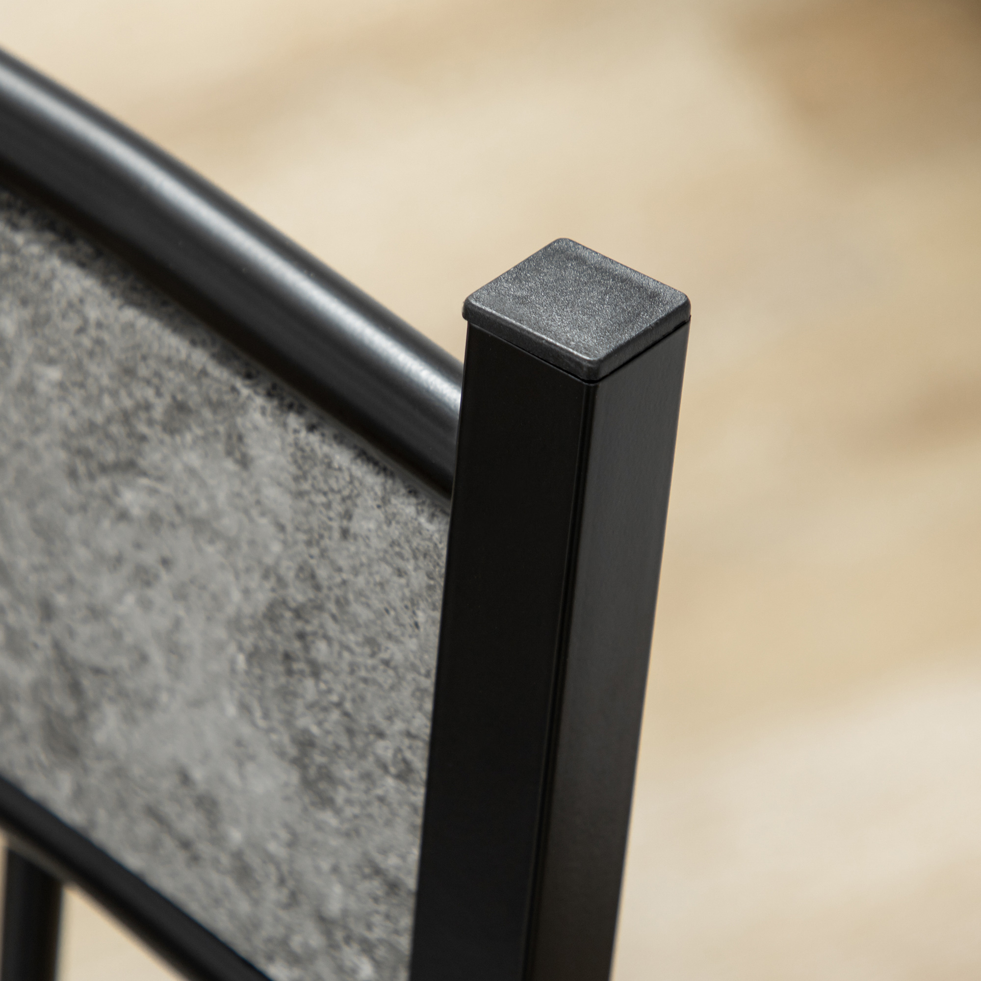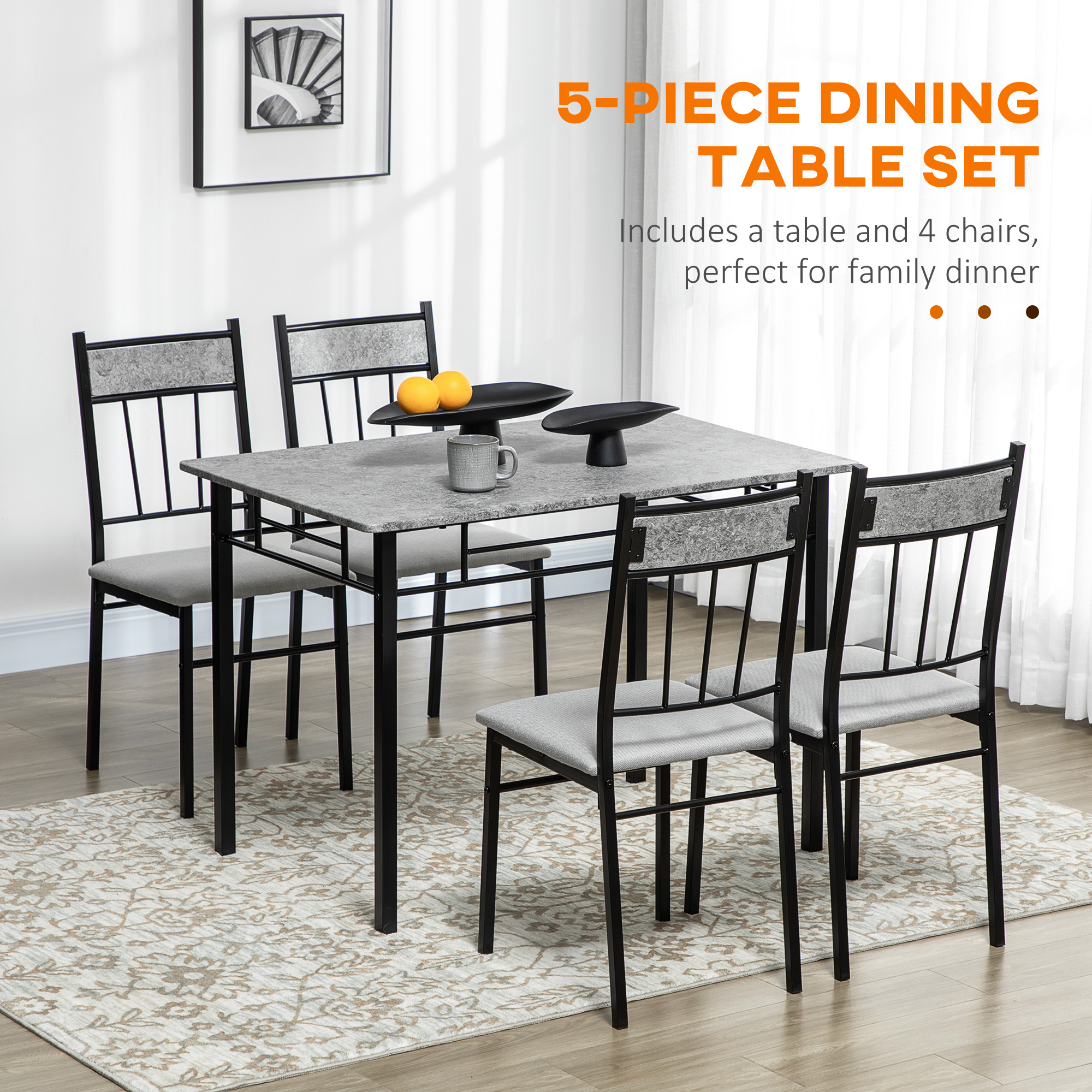HOMCOM dining table with chairs offer raw beauty for your home. The tabletop and seat panels come in a monochrome marble design, for a cool, natural look. Sit comfortably on the chairs with the padded seat panels. Each piece of space saving table and chairs has a metal frame, for a strong, supportive core. When done, simply tuck the chairs into the table - as compact as possible.