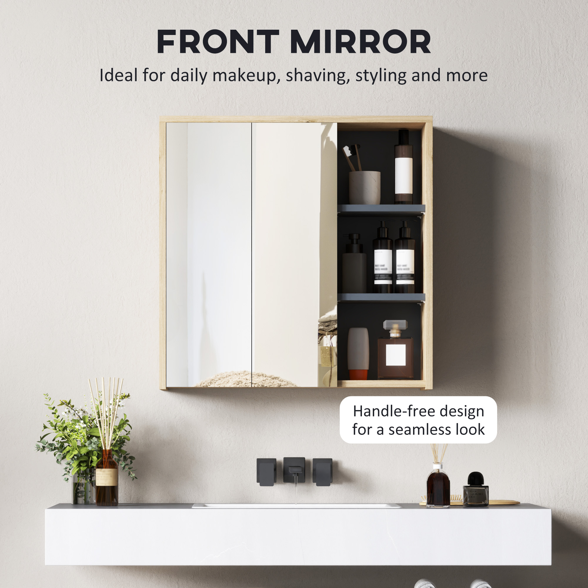 An everyday essential, this HOMCOM bathroom mirror cabinet. It comes in two parts: a mirrored door with two shelves and three outer shelves - plenty of room to keep the essentials stored and organised for a tidy space. A wall-mounted design, so it doesn't take up space: see yourself to get ready day and night with the front mirror doors, complete with smooth-open hinges.