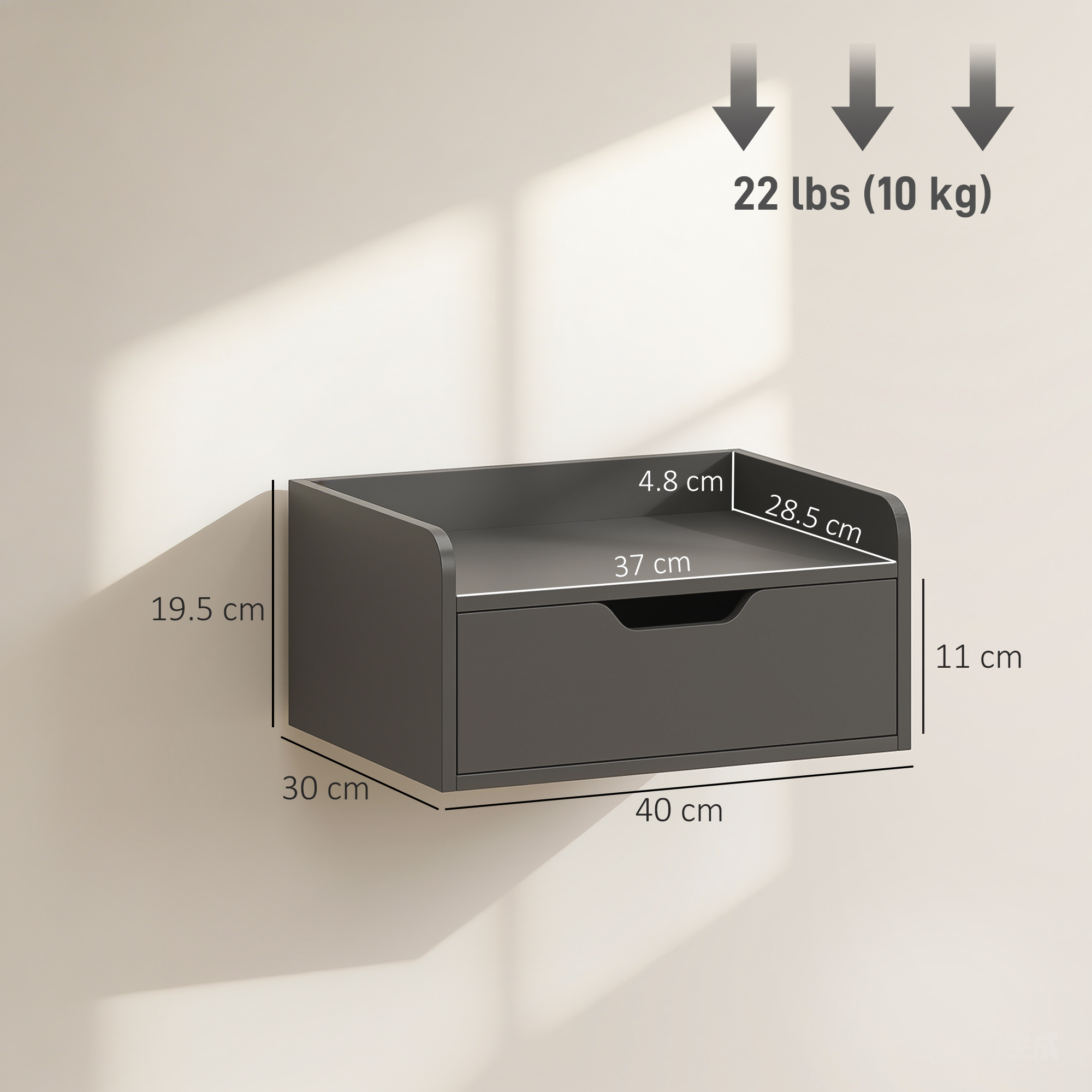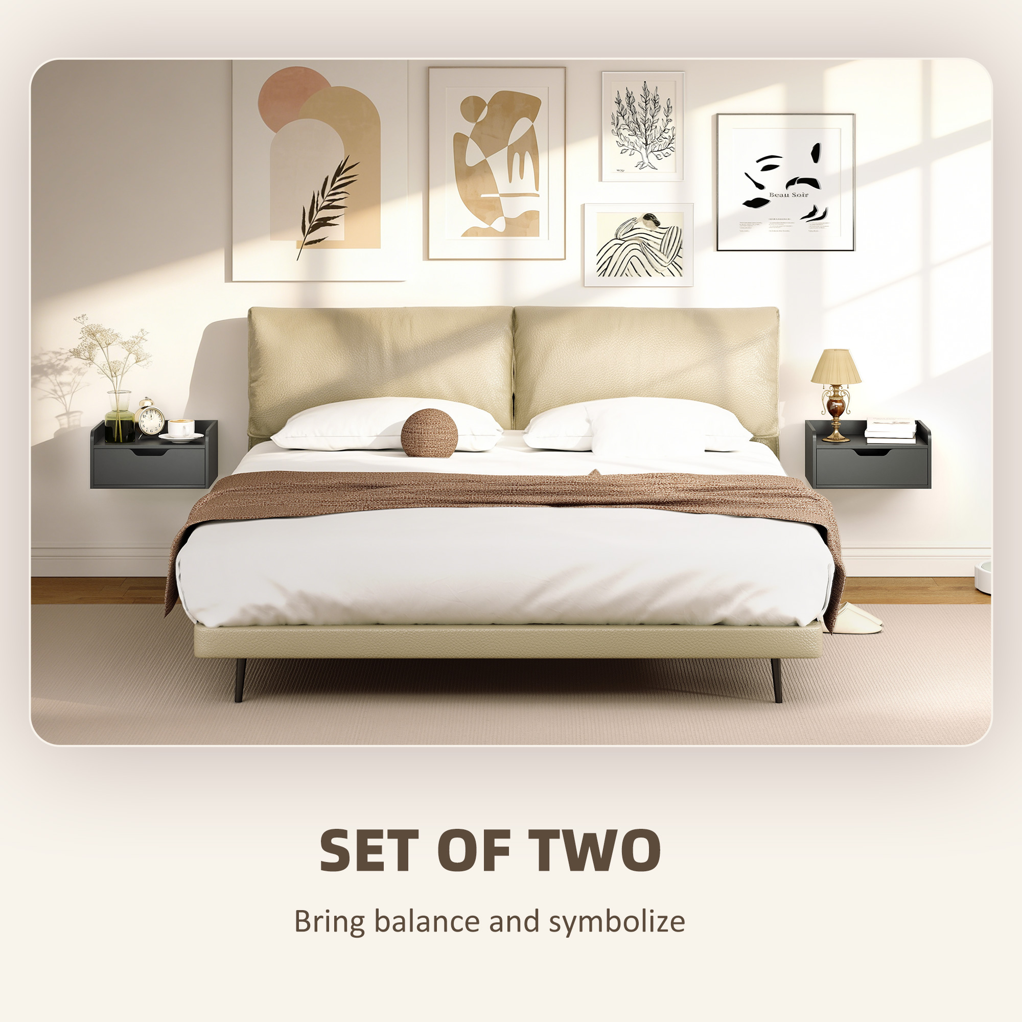 Go for classic furniture styling for bedtimes. Go for these two HOMCOM bedside tables. The firm particle board structures come in a modern look. Both bedside tables are floating - individually fixed to a position of your choice. With a pull-out drawer and top shelf, there is plenty of storage room for bedtime essentials, a clock and lamp. Package comes as a set of two.
