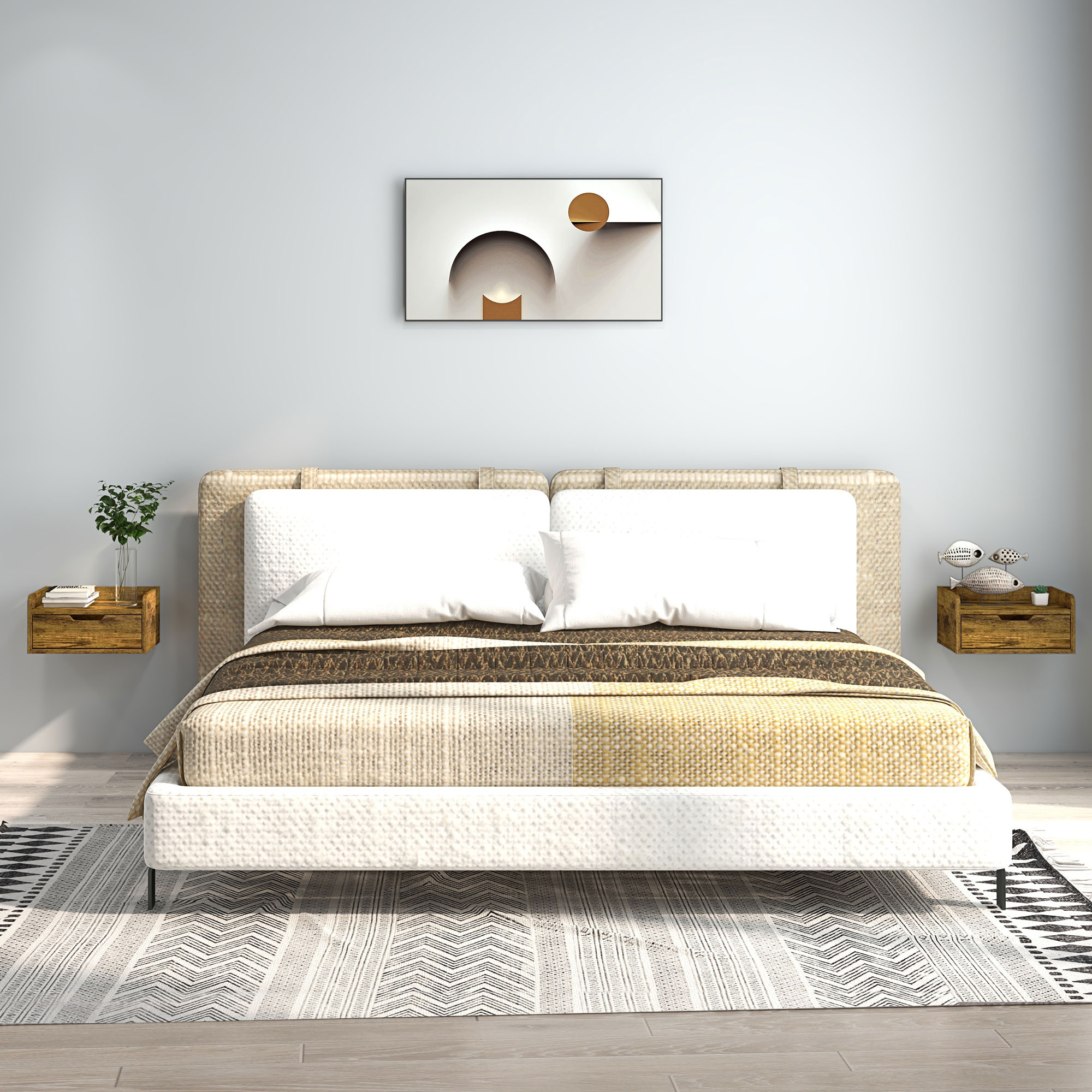 Go for classic furniture styling for bedtimes. Go for these two HOMCOM bedside tables. The firm particle board structures come in a modern look. Both bedside tables are floating - individually fixed to a position of your choice. With a pull-out drawer and top shelf, there is plenty of storage room for bedtime essentials, a clock and lamp. Package comes as a set of two.