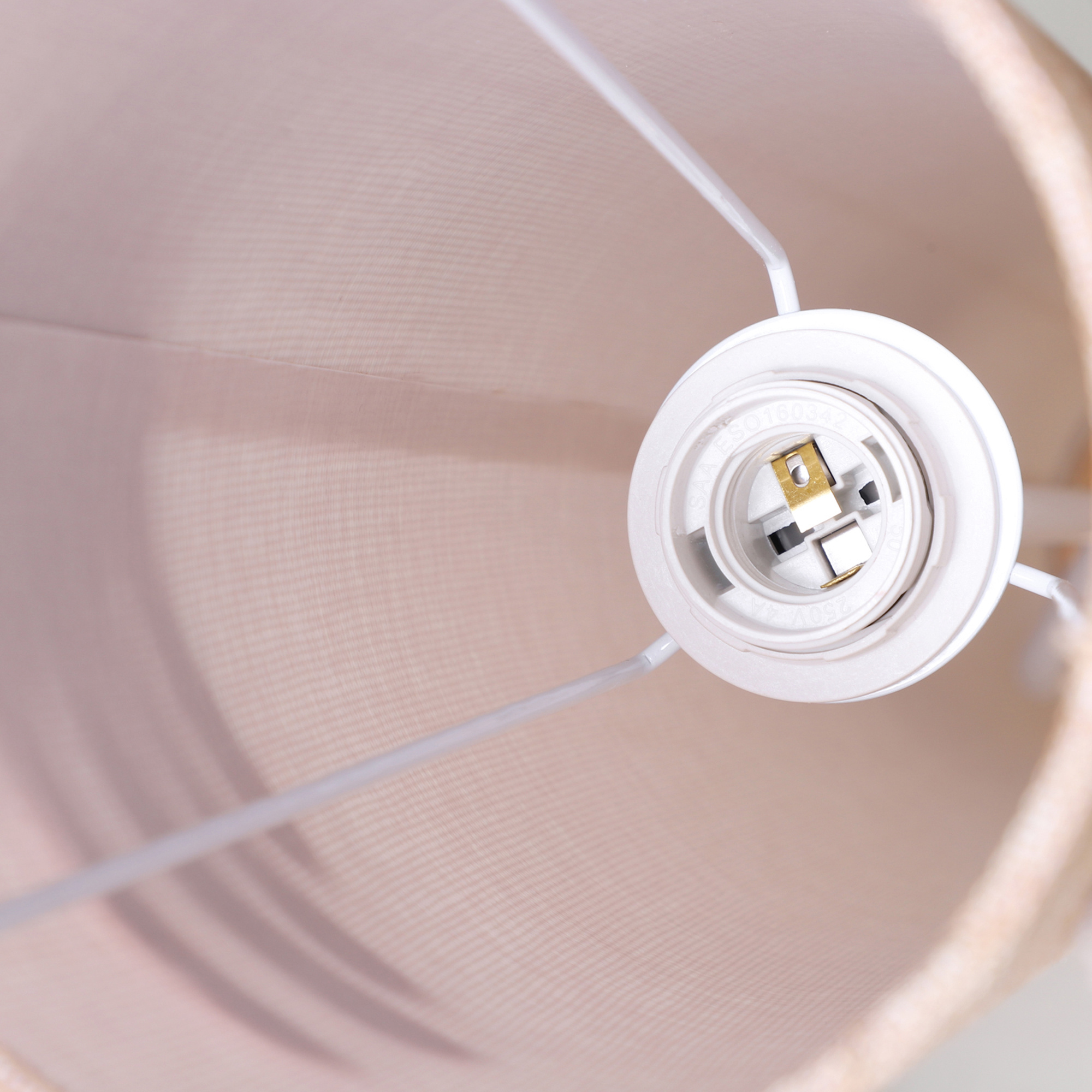 - Contemporary style with fabric lamp shade gives the warm soft glowing light