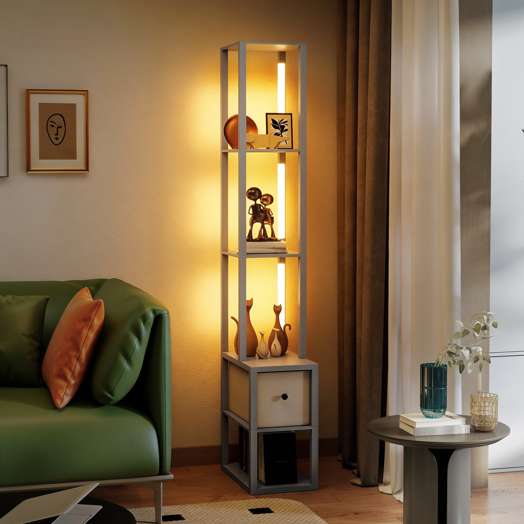 - 3-in-1 floor lamp integrates lighting, storage and display