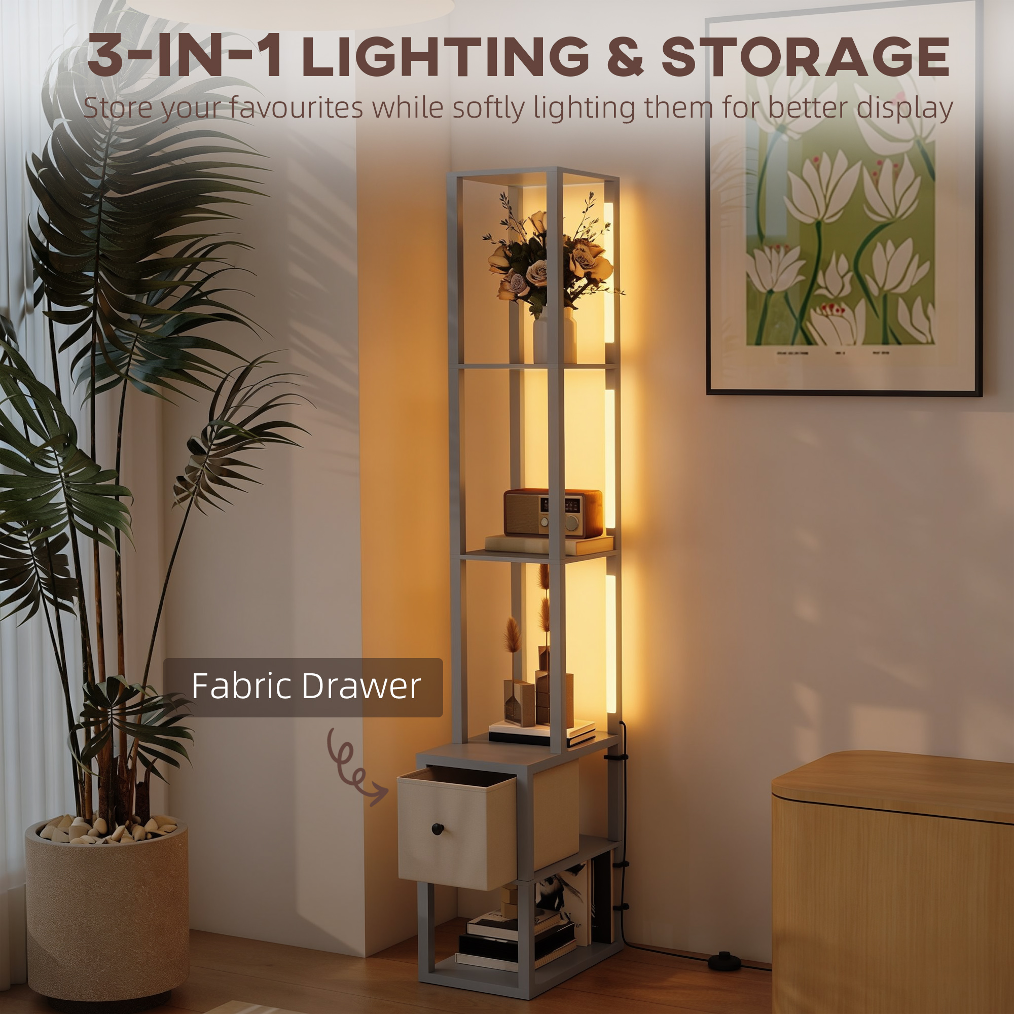 Discover the HOMCOM 3-in-1 Multifunctional Floor Lamp, where convenience meets charm. Not just a LED room lamp, it includes multi-layer shelves and handy fabric drawer, making it a stylish shelf lamp. Enjoy the snug ambiance of warm white light with three adjustable brightness levels, all controlled by a simple foot switch. A delightful blend of functionality and style for any room!