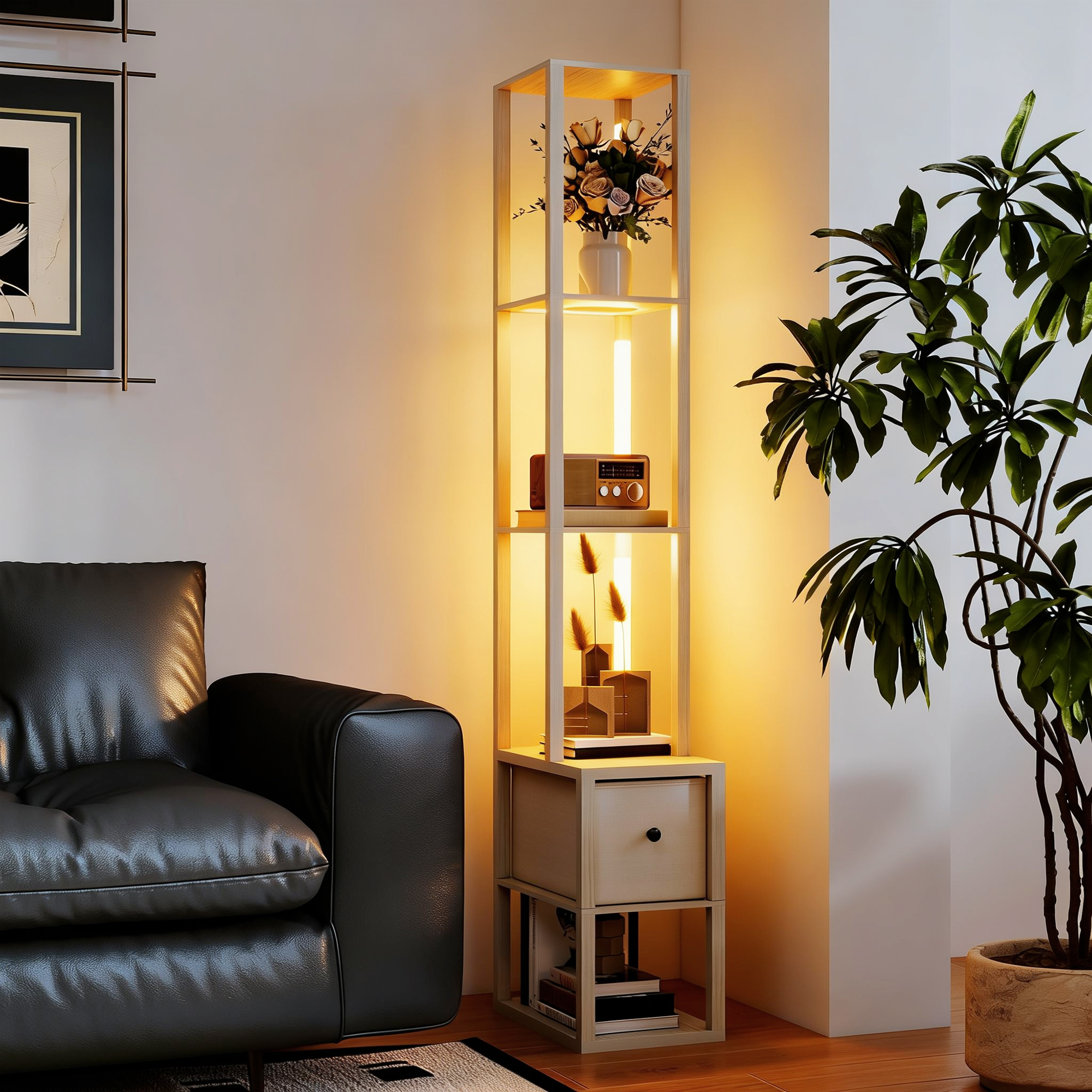 - 3-in-1 floor lamp integrates lighting, storage and display
