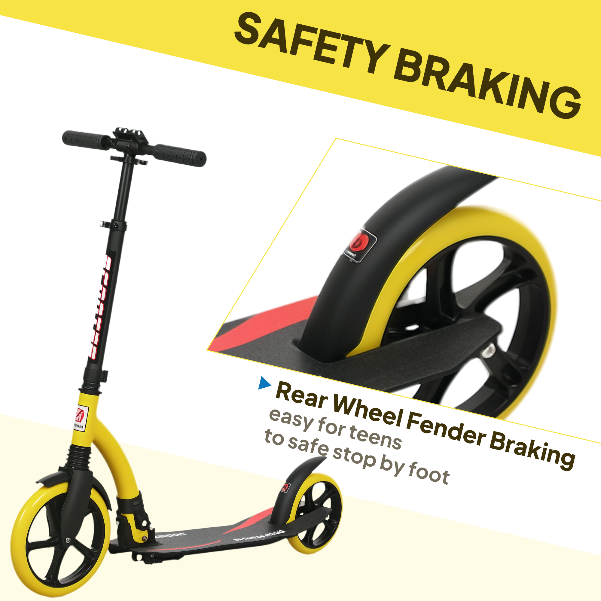 - Back brake for double the choice to stop 2 wheel scooter