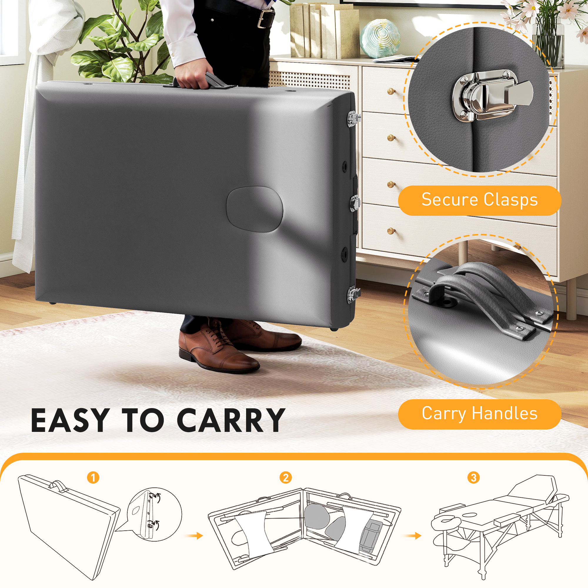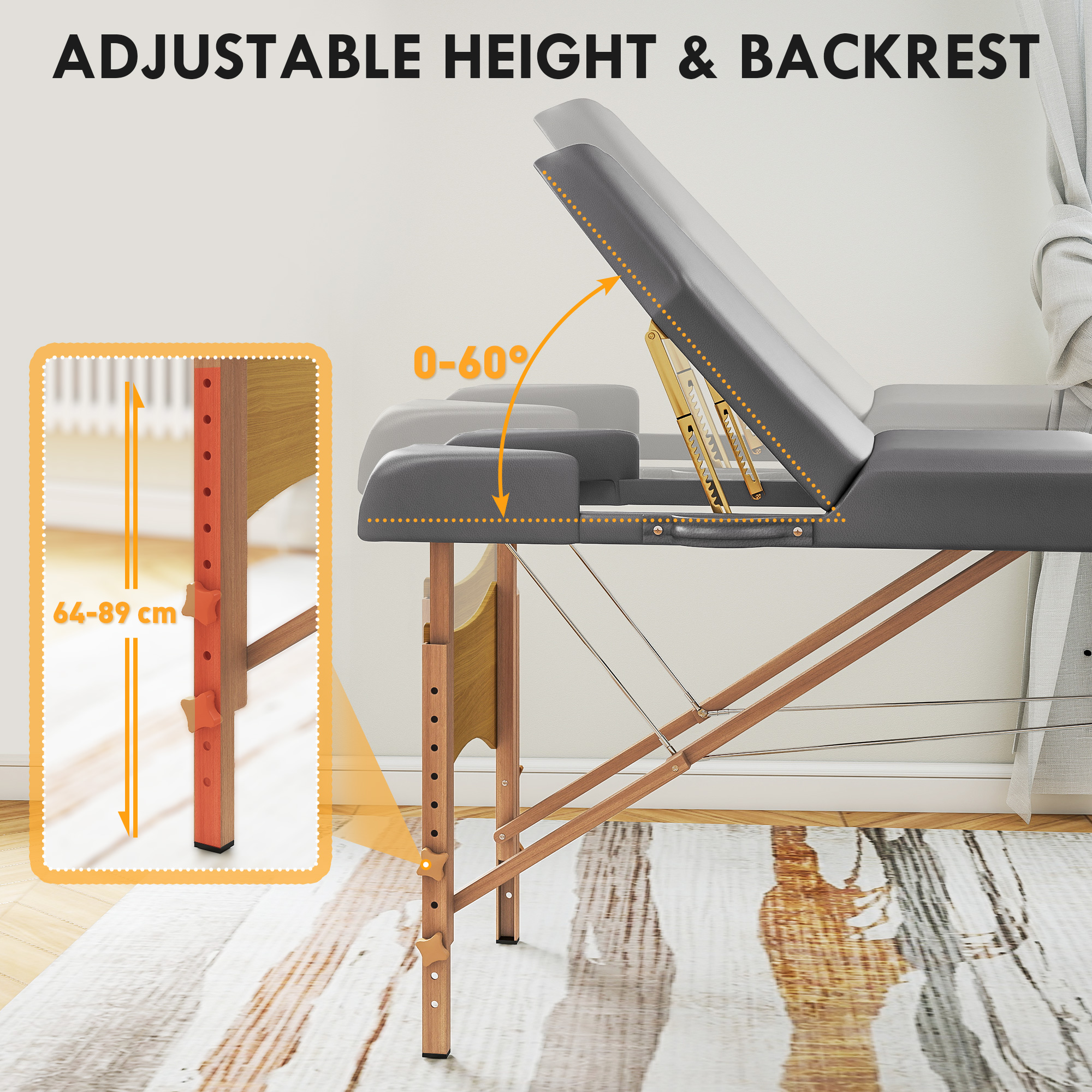 Comfortable beauty treatments forever more, with this HOMCOM massage table. Adjust the height between 64-89 cm, the back between 0° and 60° and the face cradle between -90° and 90° - it's easy to set it to the positions you need. The large padded bed, face cradle, hand pallet and padded armrests ensure full-body relaxation. When not being used, you can fold this beauty bed into a portable case, with integrated handles, to carry around easily.