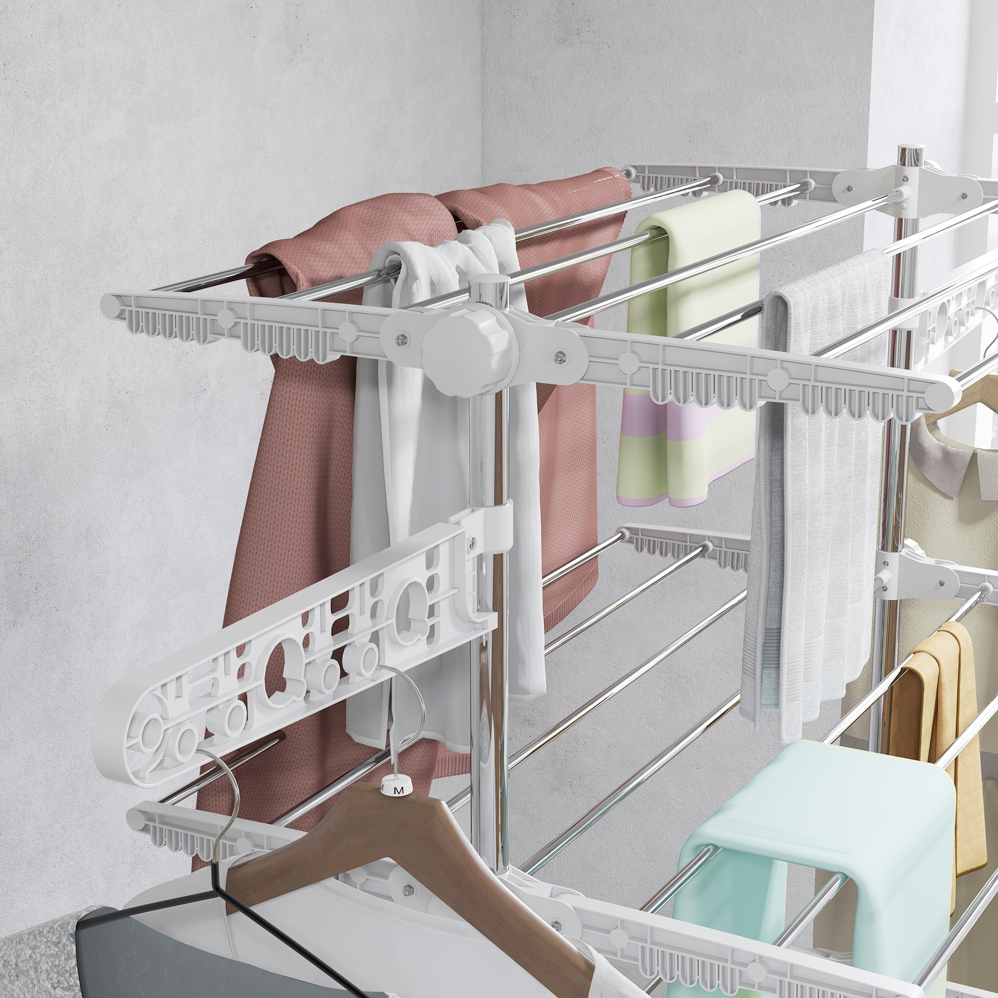 - Folding down shelves, rotatable arms and inwards-folding legs: air dryer stores away easily