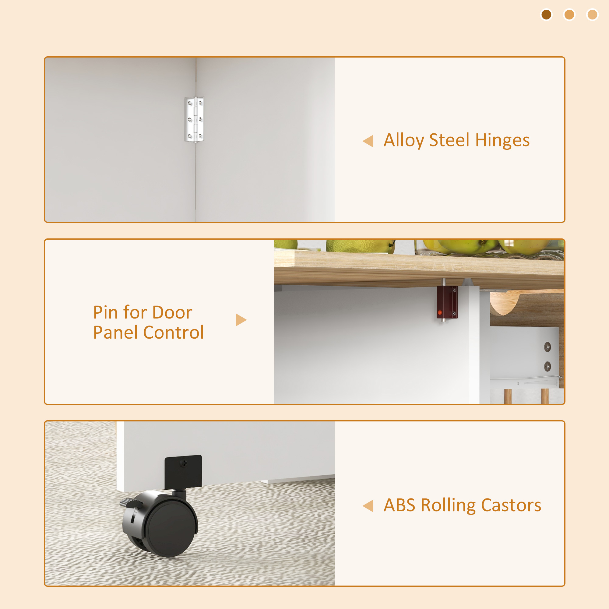 - Built-in a drawer with steel slides and two shelves: storage for tableware, utensils and other dining accessories