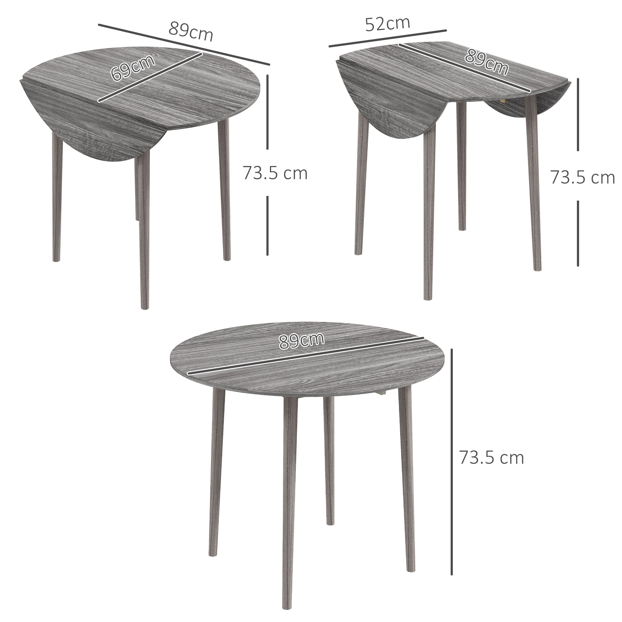 This HOMCOM drop leaf table made from particle board, with wood legs. Two side leaves to expand the space - suitable for smaller and larger spaces. Seats up to four people.