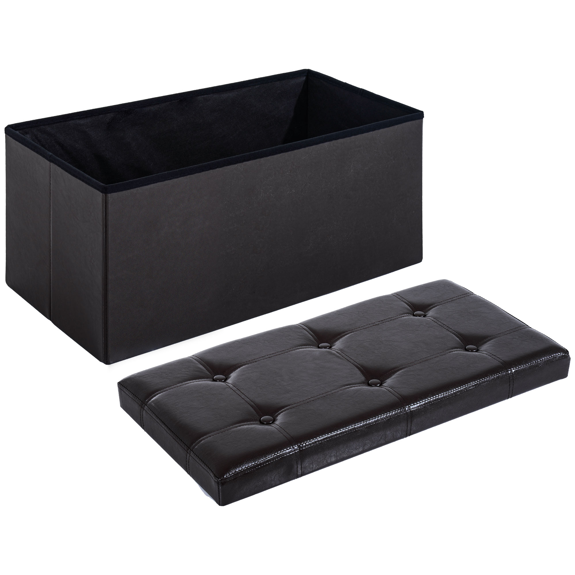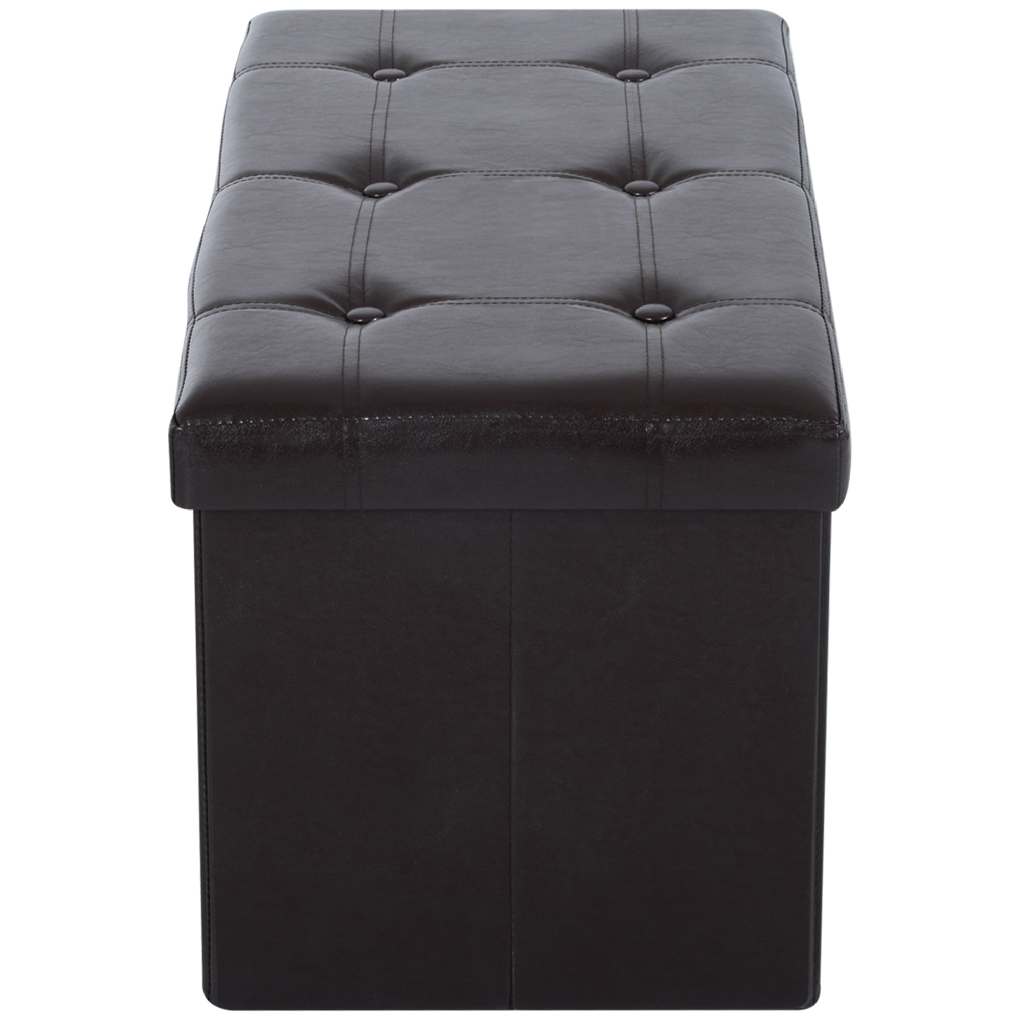 This HOMCOM collapsible ottoman made from faux leather is a great addition to your storage needs, the top has tufted design which is elegant and stylish. With a wooden frame construction to give it strength and stability. It can be used as a footstool and storage 2 in 1 and would compliment any room in your home. It has a foldable design so when not in use it can be stored away.