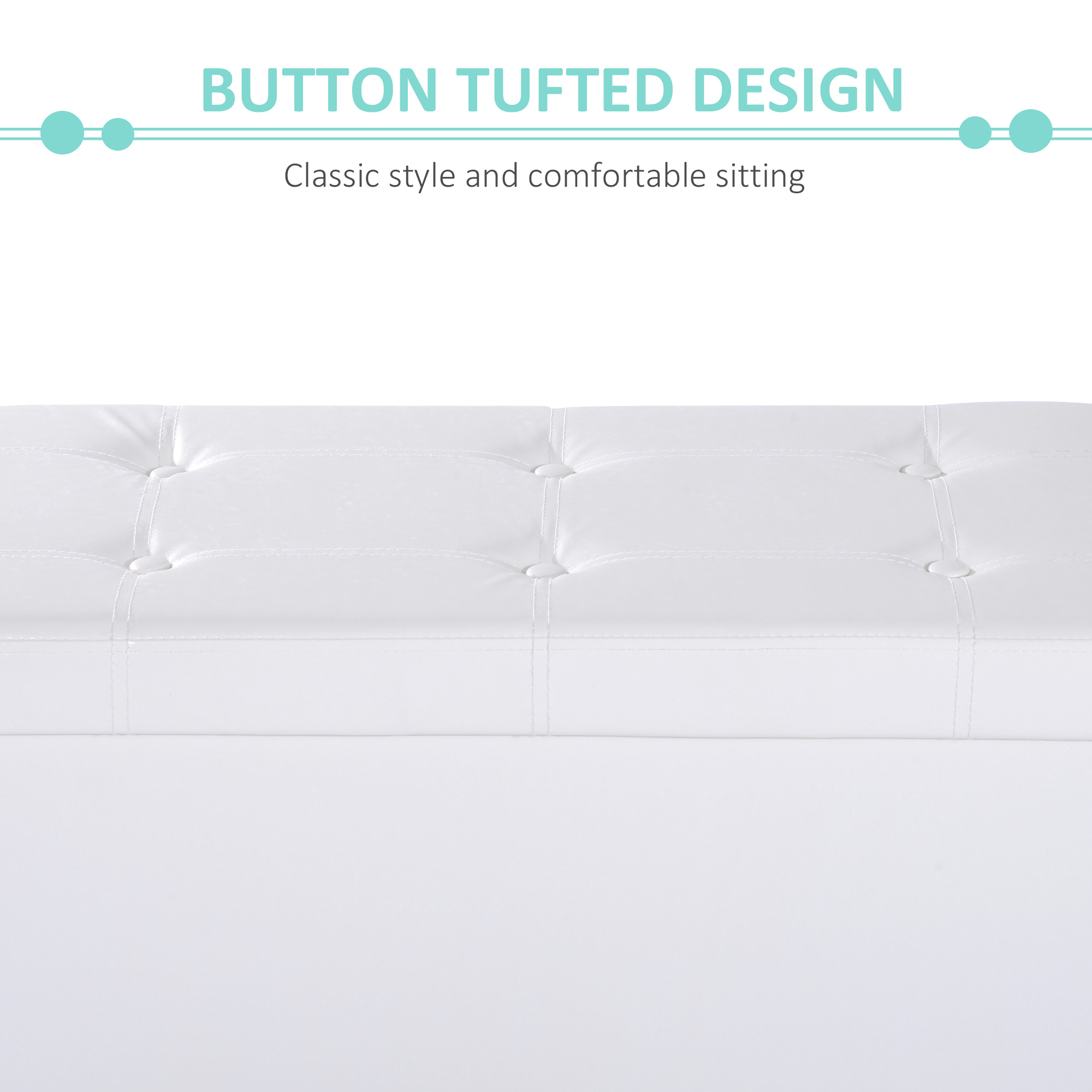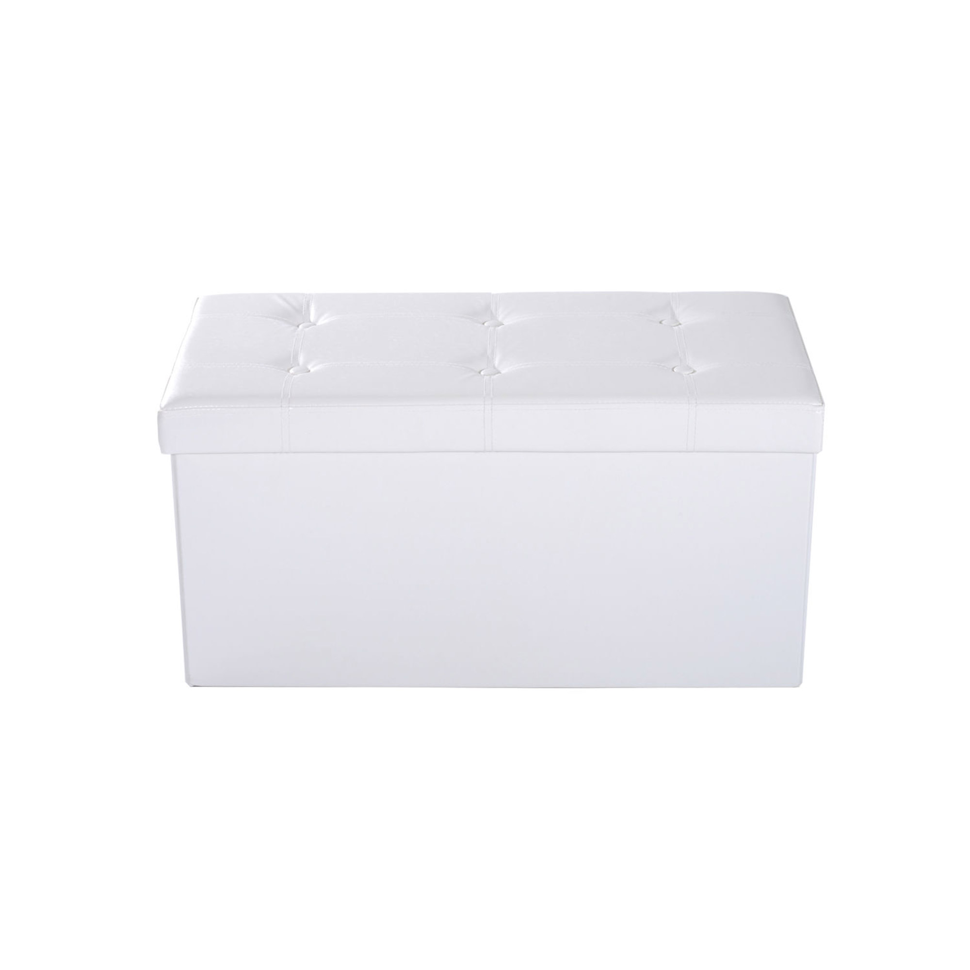This HOMCOM collapsible ottoman made from faux leather is a great addition to your storage needs, the top has tufted design which is elegant and stylish. With a wooden frame construction to give it strength and stability. It can be used as a footstool and storage 2 in 1 and would compliment any room in your home. It has a foldable design so when not in use it can be stored away.