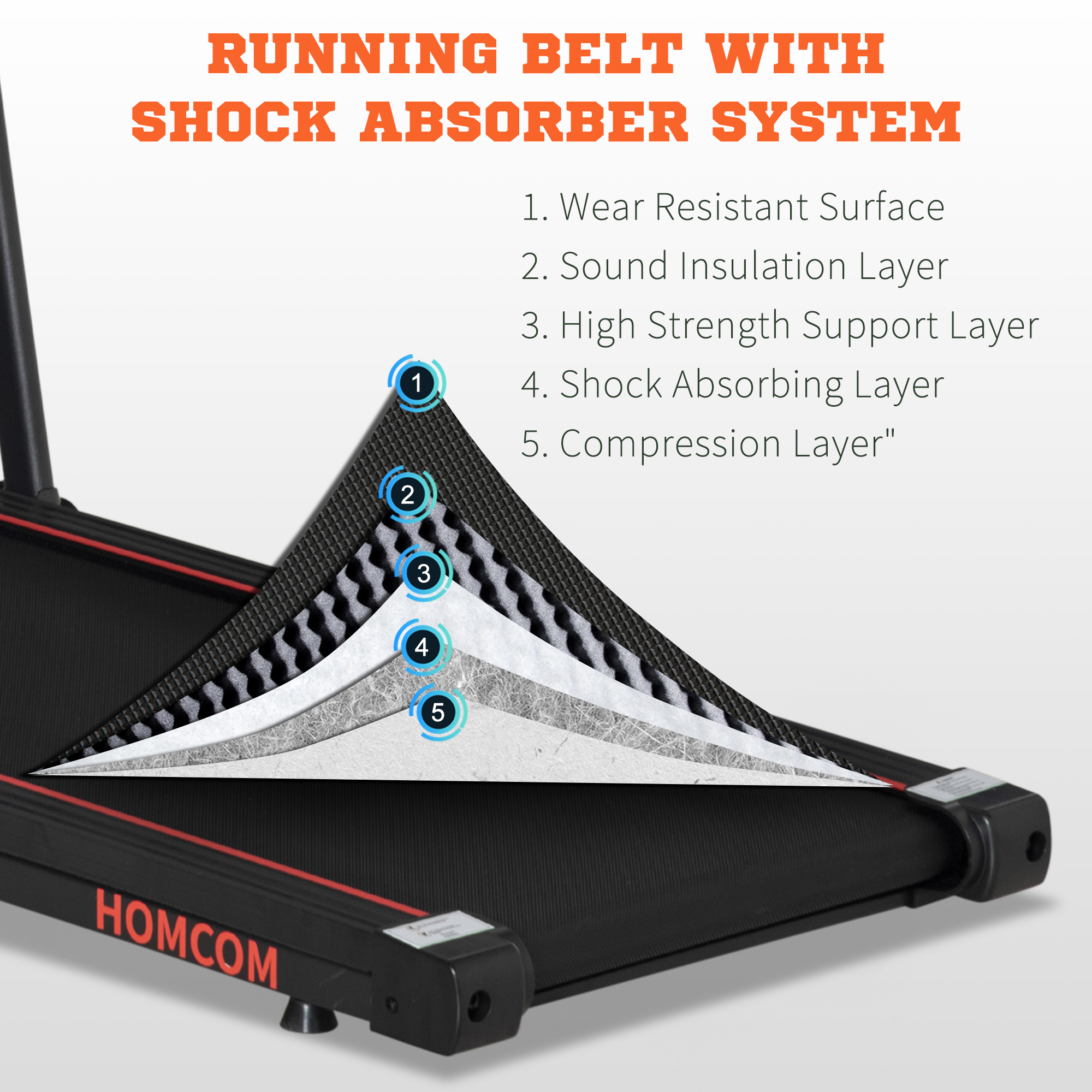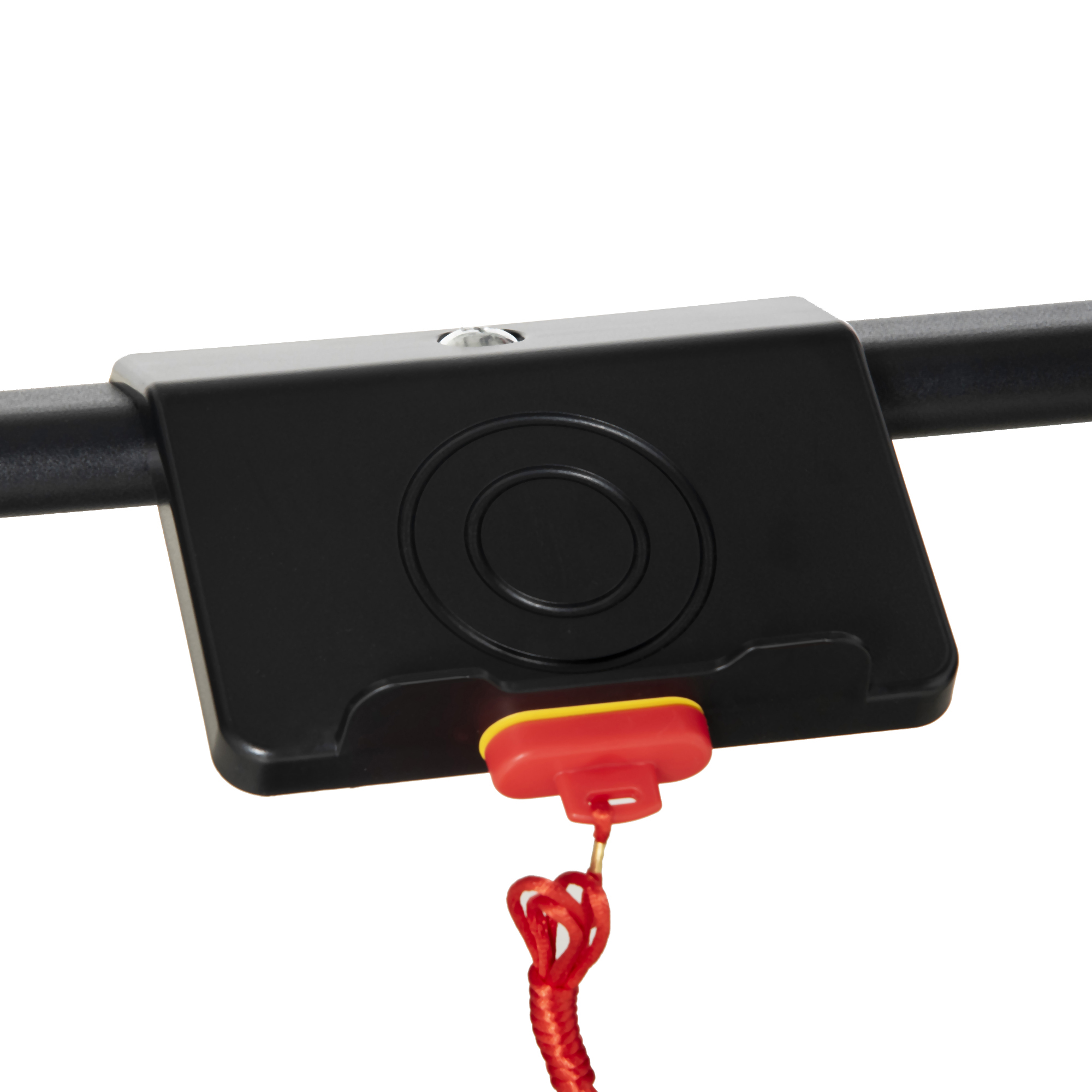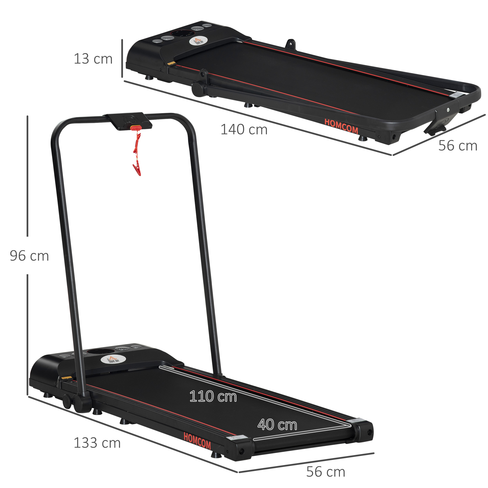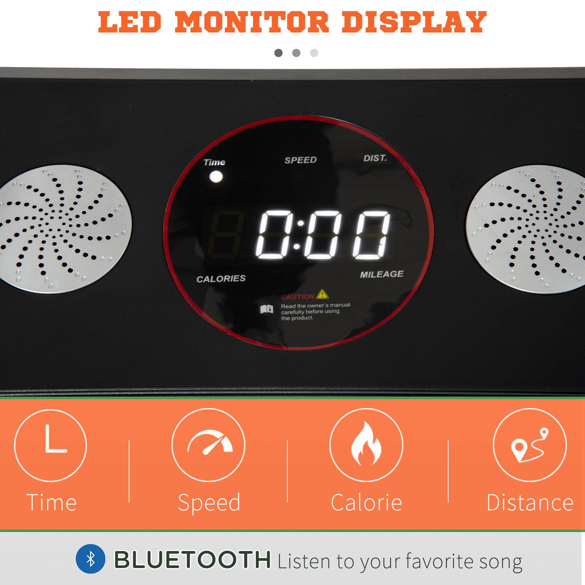 Boost your step count without leaving home with the HOMCOM walking treadmill. The built-in LED screen helps you monitor time, speed, distance and calories, keeping you on track with your fitness goals. It features a non-slip running belt for safety and a safety key that allows for quick stops if necessary. With two wheels at the bottom, it's easily portable, making it convenient to move wherever you need. Enjoy an effective and safe workout right from the comfort of your own home!